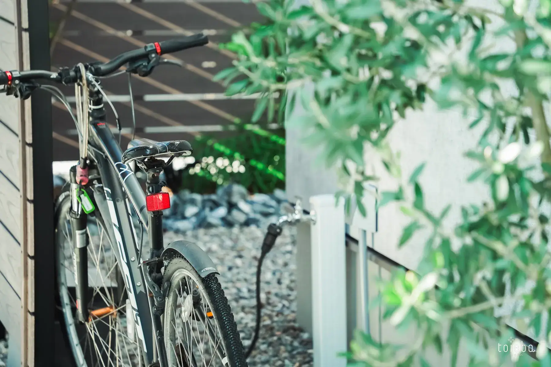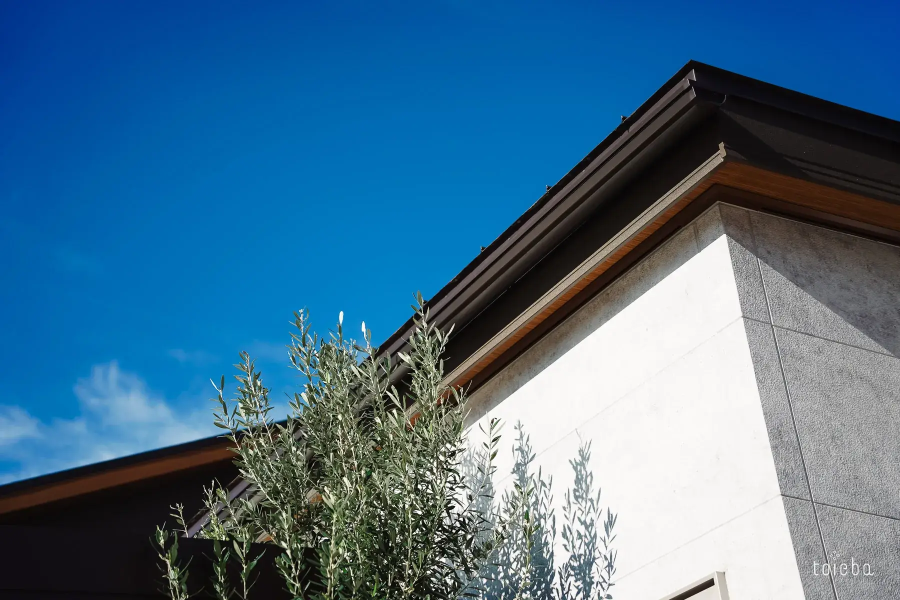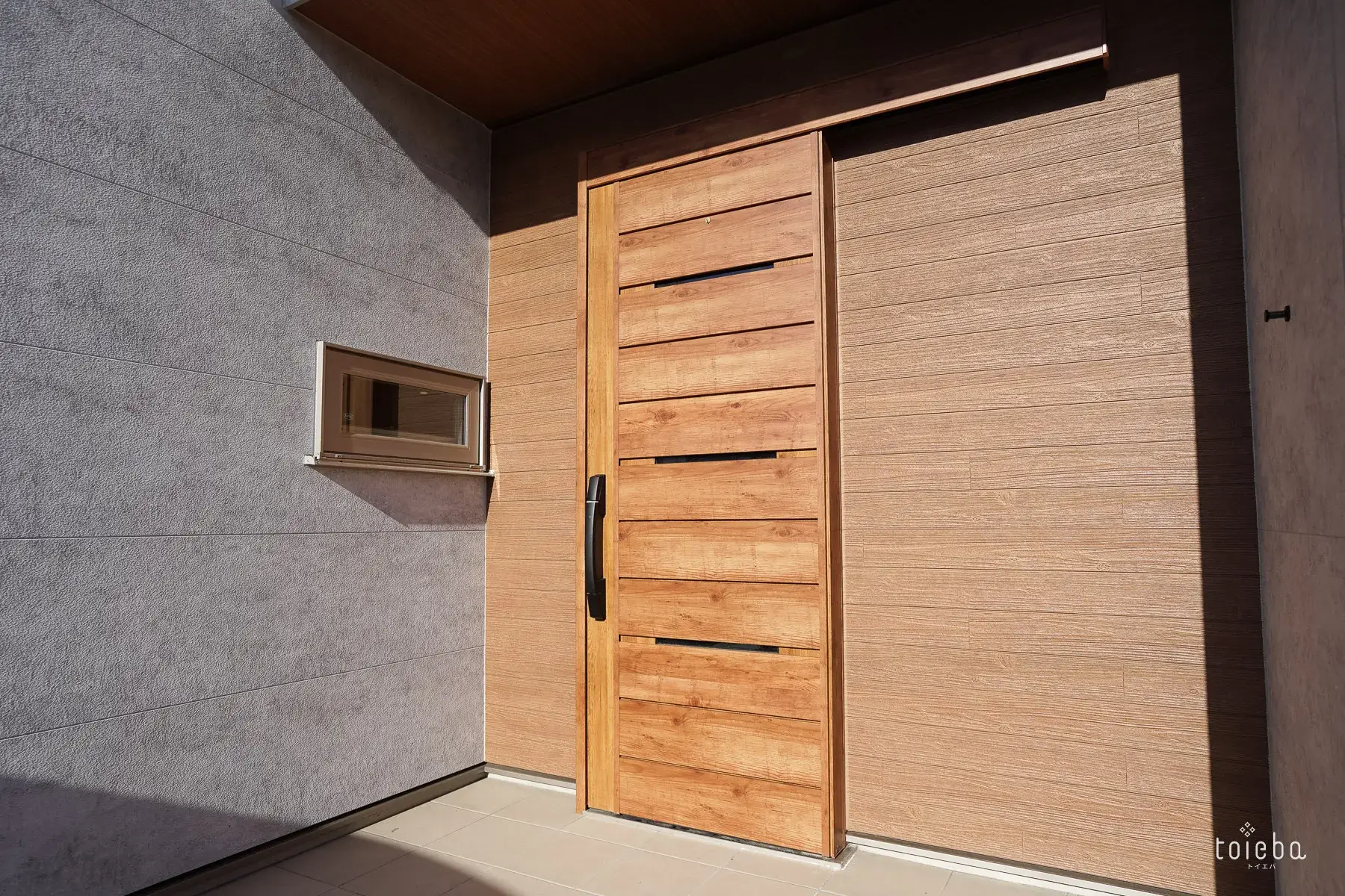 家の外壁には、雨で汚れが落ちる外壁材「ケイミュー」の「FLAT DESIGN PANEL フィエルテ」(AXSデザイン オプション)を採用。もやもやっとした柄が奥様のお気に入り!
