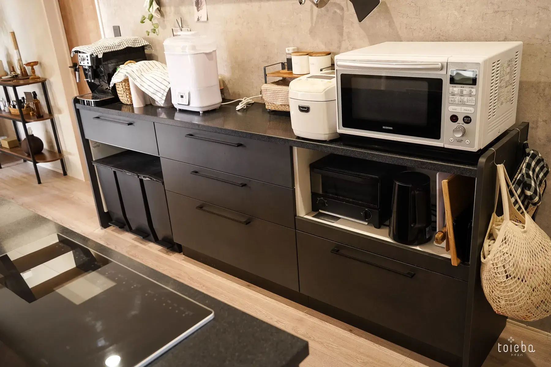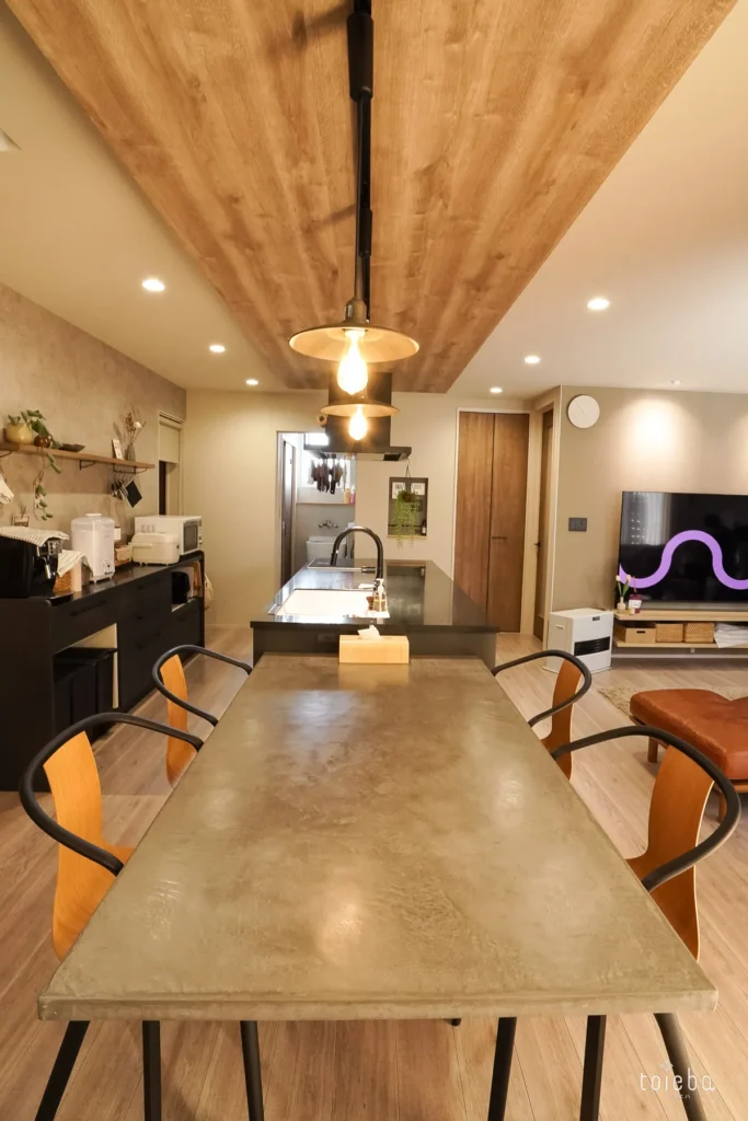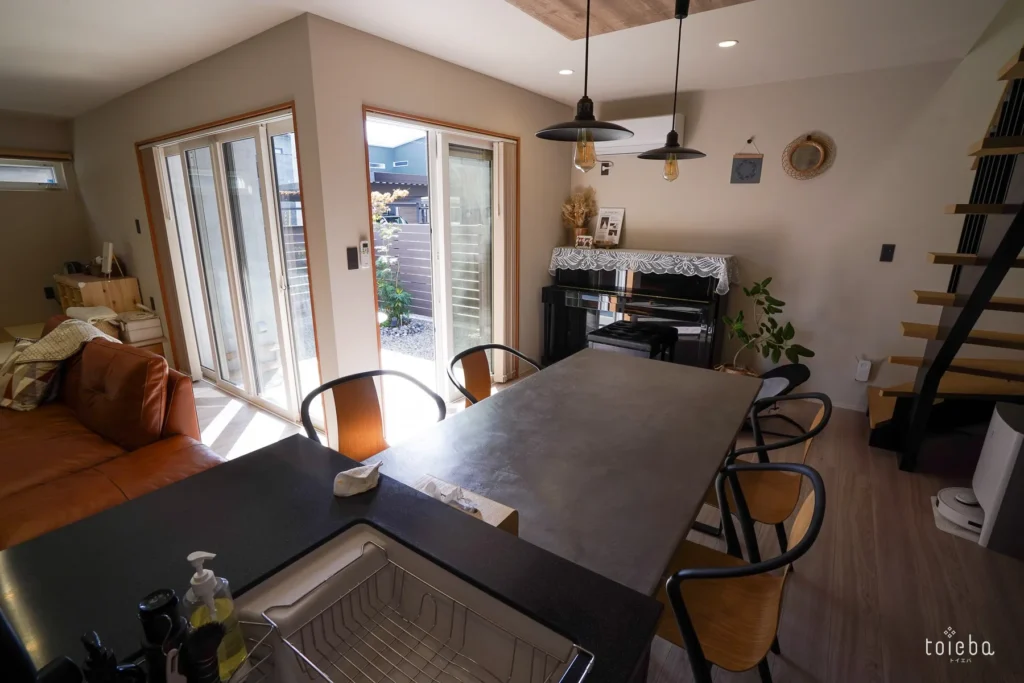 さらに、キッチンのすぐ隣がダイニングテーブルなので、できた料理をそのままサッと運べる動線に。家族や友人とホームパーティーを開く際にも、このレイアウトが大活躍しているそうです。