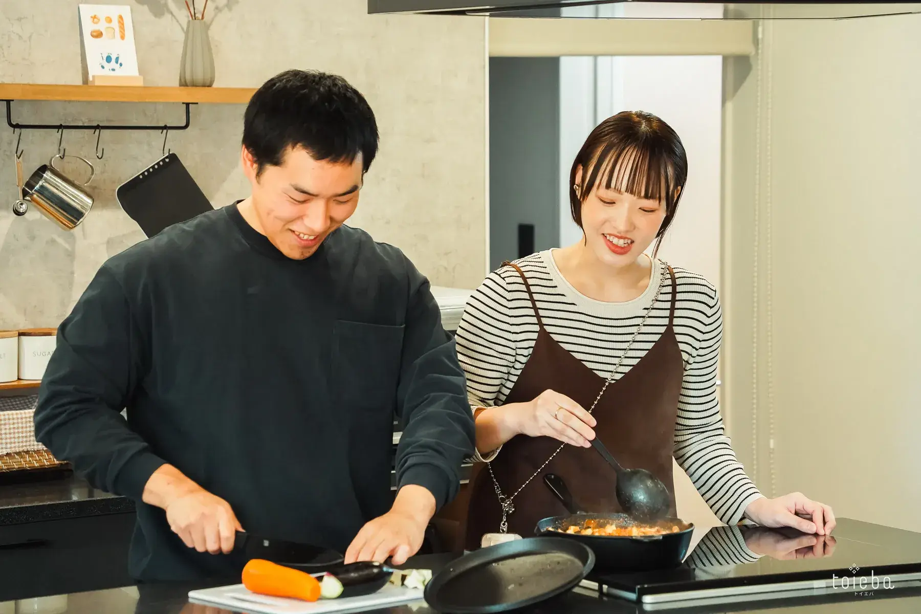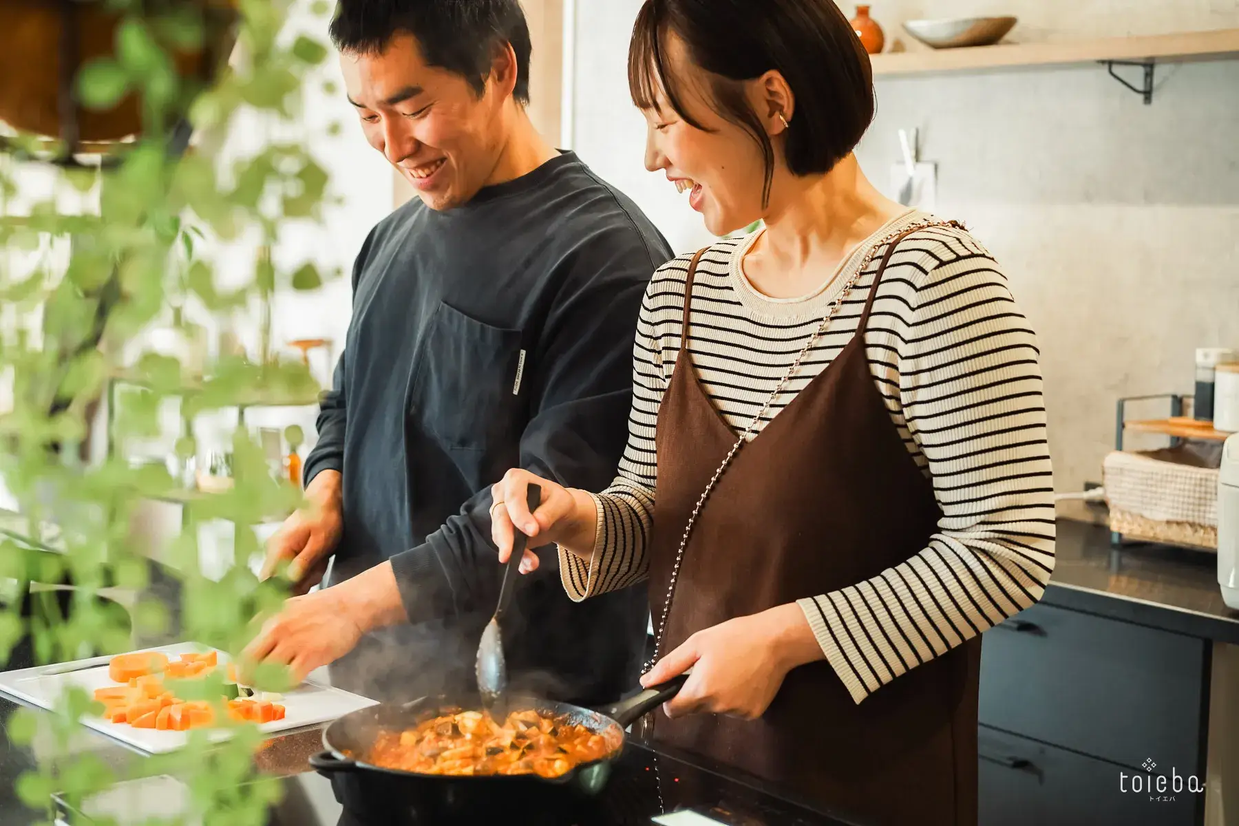 2人で並んで料理中もお子さんを見守れて