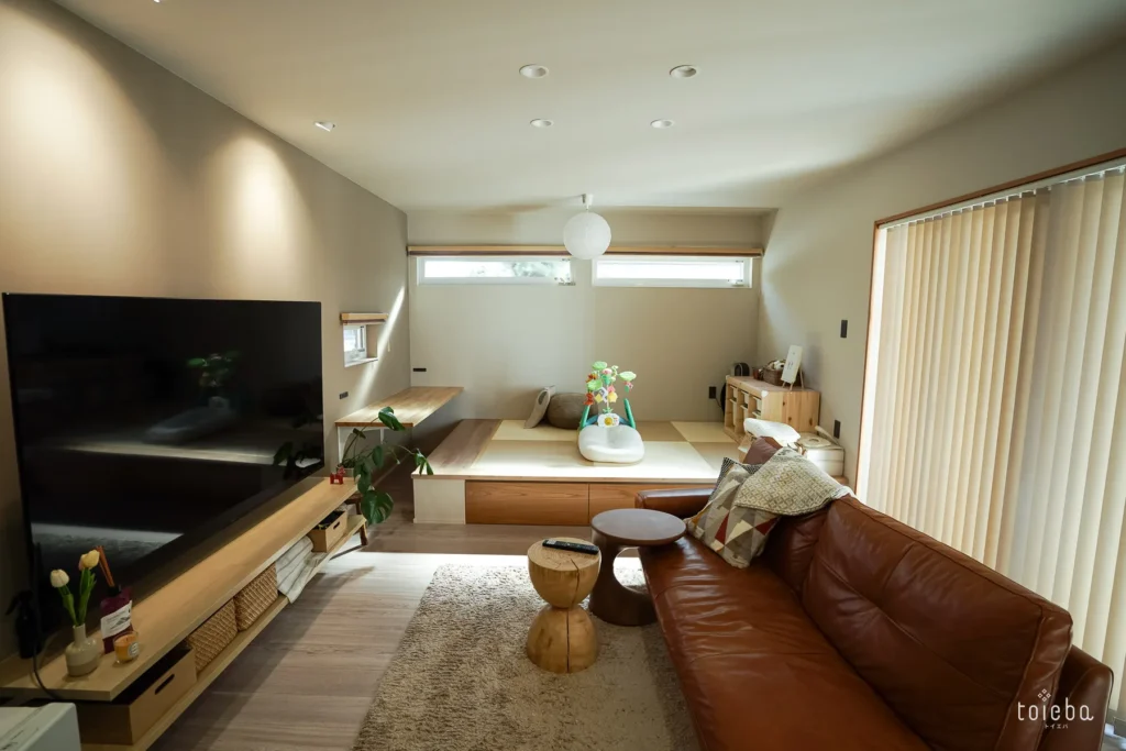 リビングにはソファと畳の小上がりスペース