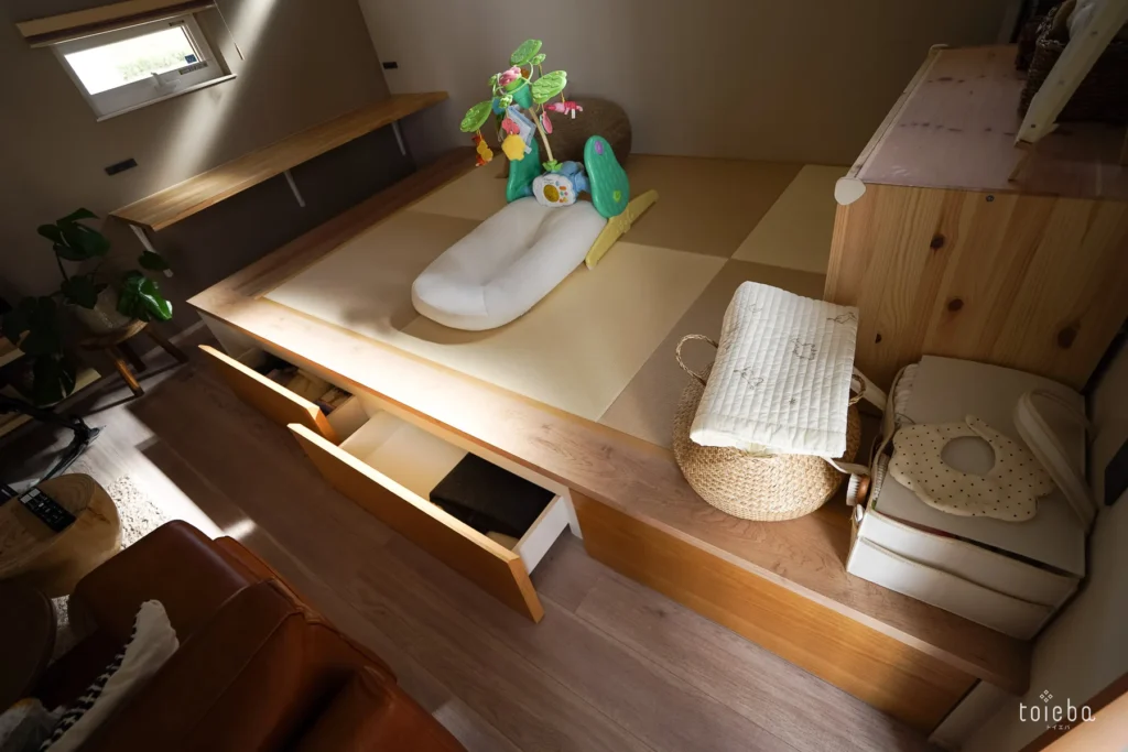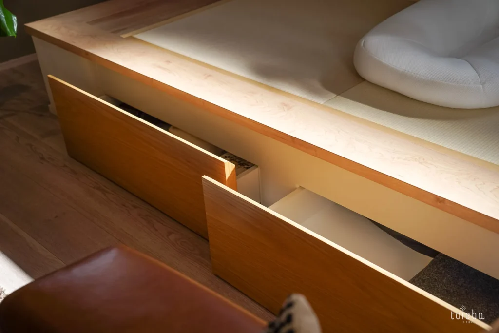 また、小上がりの高さを活かして下部を収納スペースにすることは、営業担当からのアドバイス