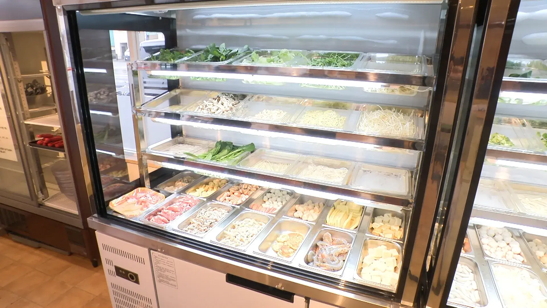 お店では、好みの辛さや具材でオリジナルの麻辣烫を作れます。生麺や乾麺、具材などが並ぶショーケースの中から、自分の好きなものを選べるシステムです。