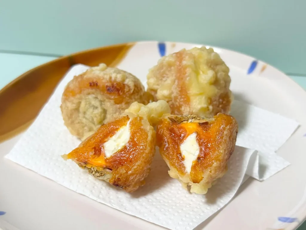 干柿の天ぷらは、外側の香ばしさと中のしっとりとした甘みが絶妙に重なる、知る人ぞ知る楽しみ方です。ほんのり温まることで、富山干柿の甘さがさらに際立ちます。