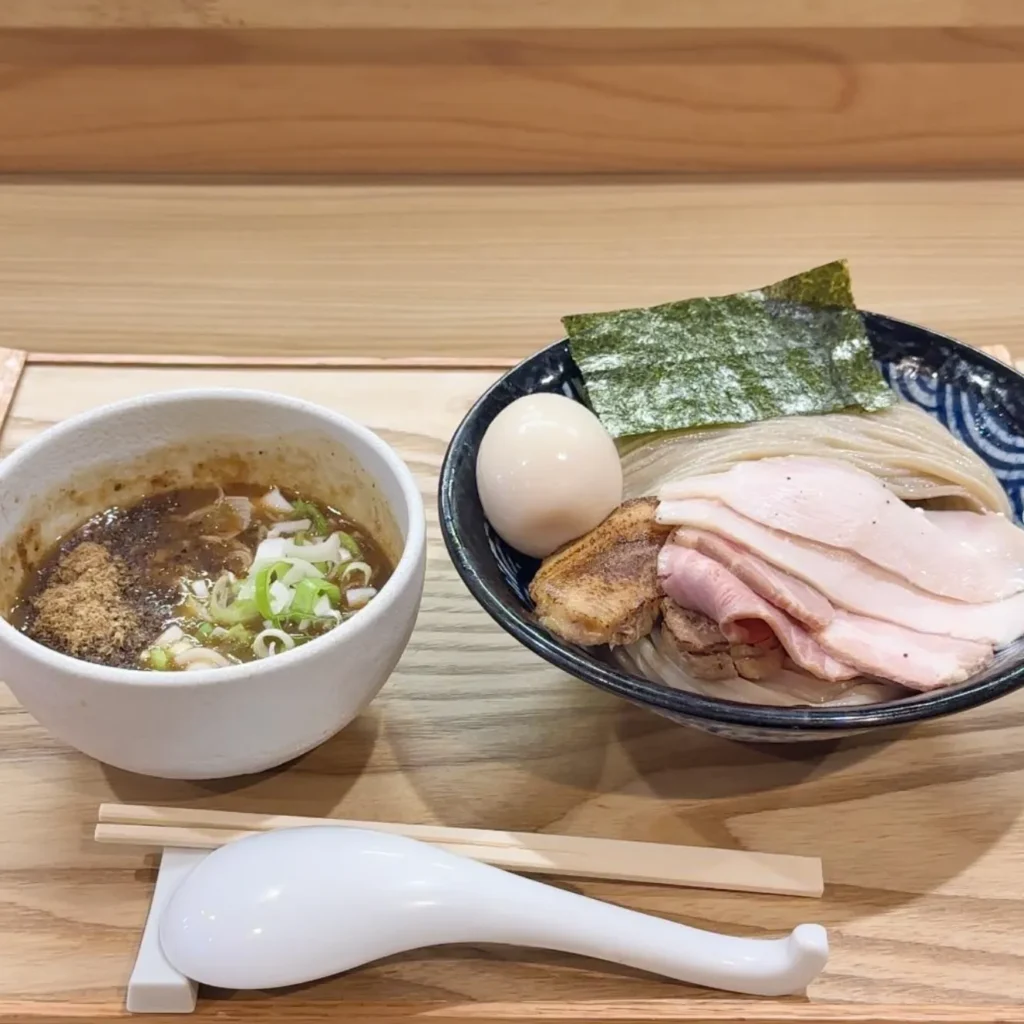 一番人気の「特製濃厚つけ麺」は、3種類のチャーシューと味付け玉子が贅沢に盛り付けられた至極の一品です。スープは気温の変化に合わせて調整されており、寒い時期はまったりと濃厚に、暑い時期は少し酸味を利かせてさっぱりと仕上げられています。何度行っても新鮮な気持ちを味わえる、日替わりのつけ麺もおすすめです。