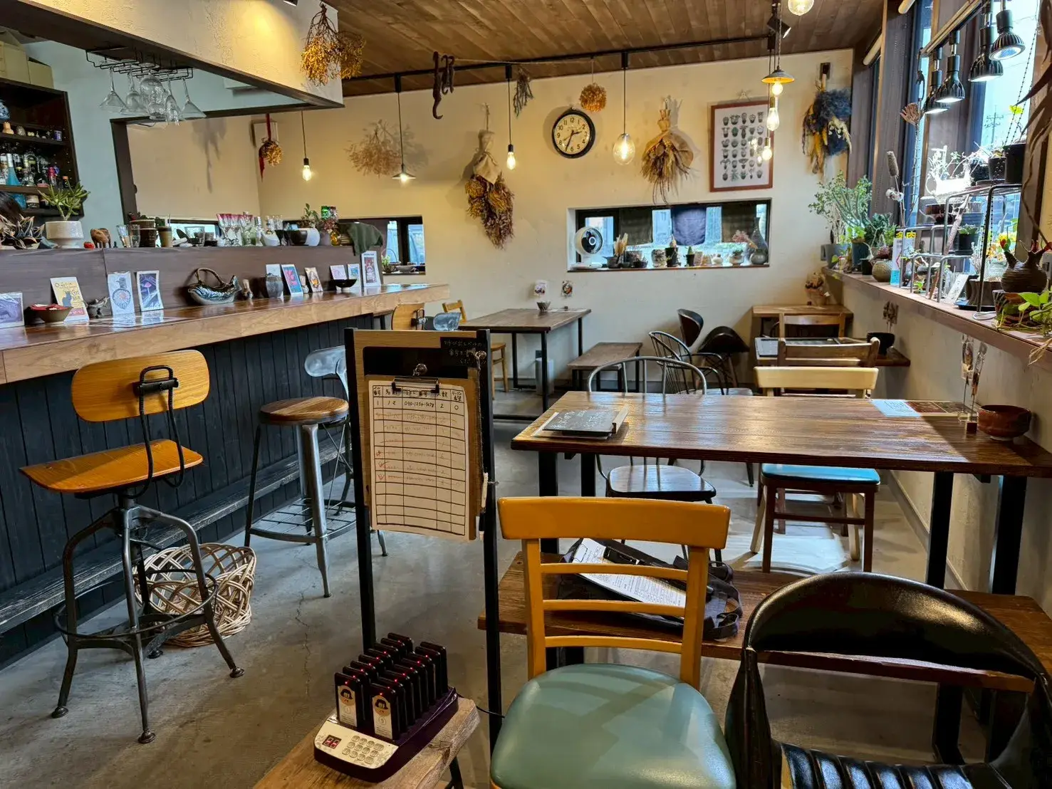 ノマの店内には、可愛い間接照明や置き物、ドライフラワーなどがあり、お洒落な雑貨屋さんのような雰囲気でした!沢山の観葉植物は、オーナーさんの「店内の雰囲気も楽しんで欲しい」というこだわりだそうです♪