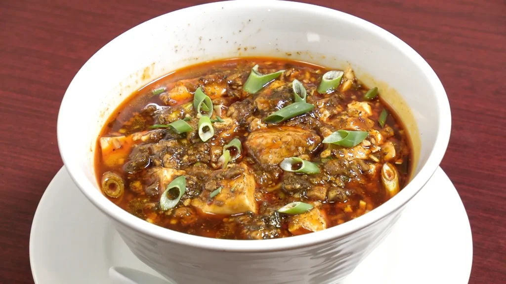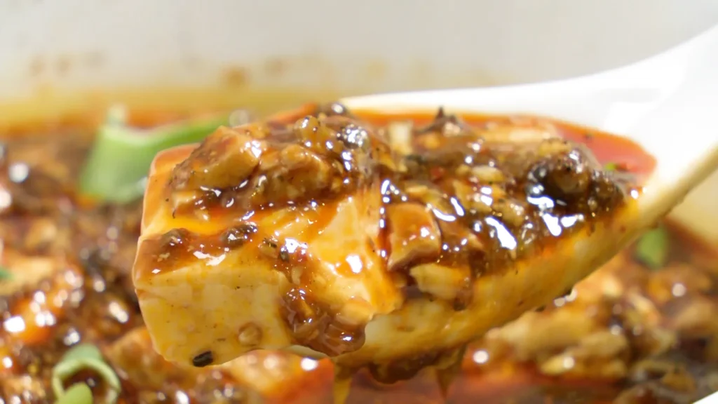 そこに合わせるのが、中国四川省・漢源で生産される最高級の中国山椒。華やかな香りと、じんわりと広がるしびれが、麻婆豆腐全体の味を引き締めている。