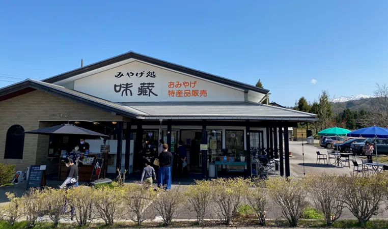 上市町観光の締めくくりに上市町の恵みを持ち帰るなら、「里山の駅 つるぎの味蔵」は外せません。上市駅から車で10分ほどの農業エリアにあり、背後にそびえる剱岳が美しく見える絶好のロケーションです。
