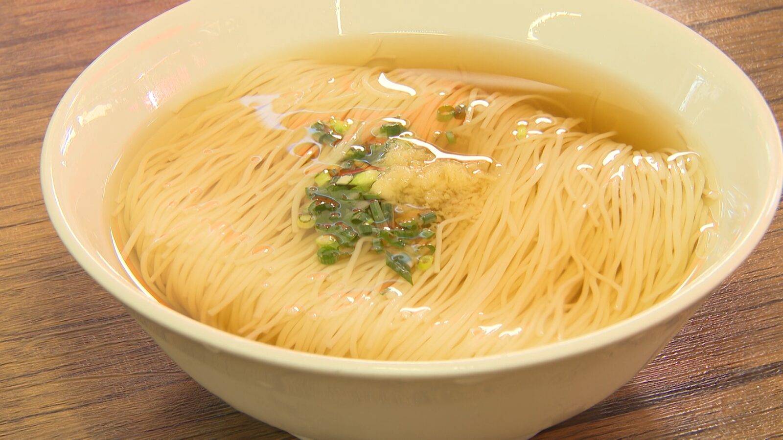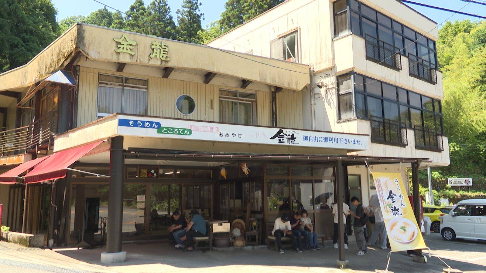 大岩山日石寺の参拝客をお迎えするために、1960年に誕生した「そうめん金龍」。今や全国から観光客が訪れるこのお店のそうめんは、ひと目で金龍のそうめんとわかるほど美しい見た目が特徴的です。