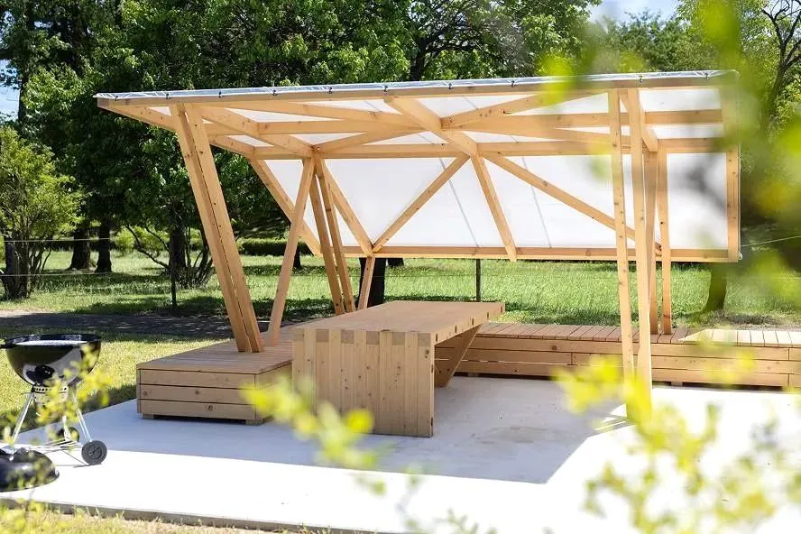 2025年8月、スポーツを楽しむ人々の活気にあふれる常願寺川公園内にオープンした「BBQ TERRACE」。気軽に本格的なバーベキューを楽しめる施設として、地元の方はもちろん、観光客からも人気を集めています。リードをつけた犬も、指定エリアであれば同伴可能です。