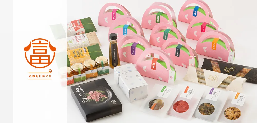 富山の「おすそわけ」文化を形にしたシリーズです。ほたるいかの粕漬や燻製、うま辛昆布みそ、おむすび白とろろなど、富山のおいしいものが食べきりサイズの小箱に詰まっており、洗練された手土産として喜ばれます。