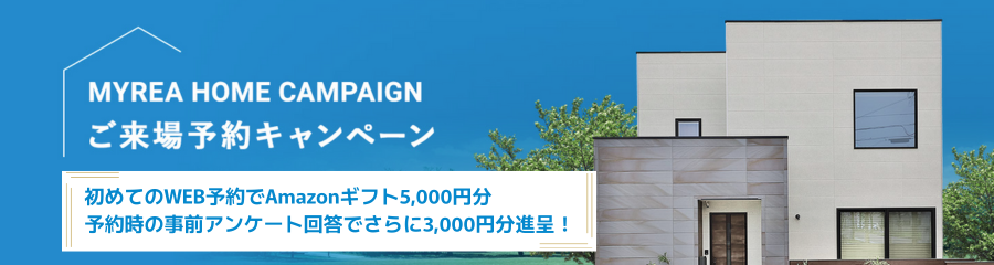 現在1/5(月)~2/1(日)の期間限定で実際にご来場いただいた新規のお客様へ「Amazonギフト最大8,000円分」をプレゼントしています。※特典には条件があります。詳細は、マイレアホームのホームページをご確認ください。