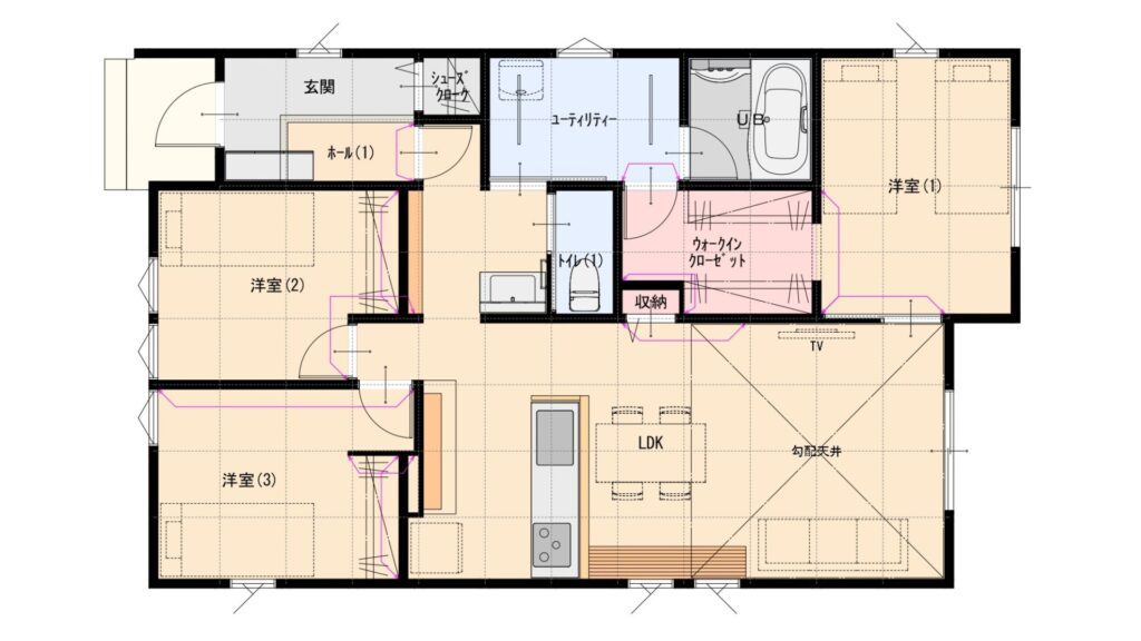 ▼金沢弥生(平屋)モデルハウスと同様の広さ・間取りの場合