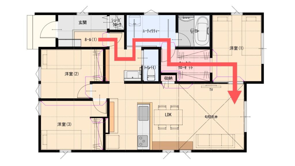 この家の特徴の一つはスムーズな生活動線。