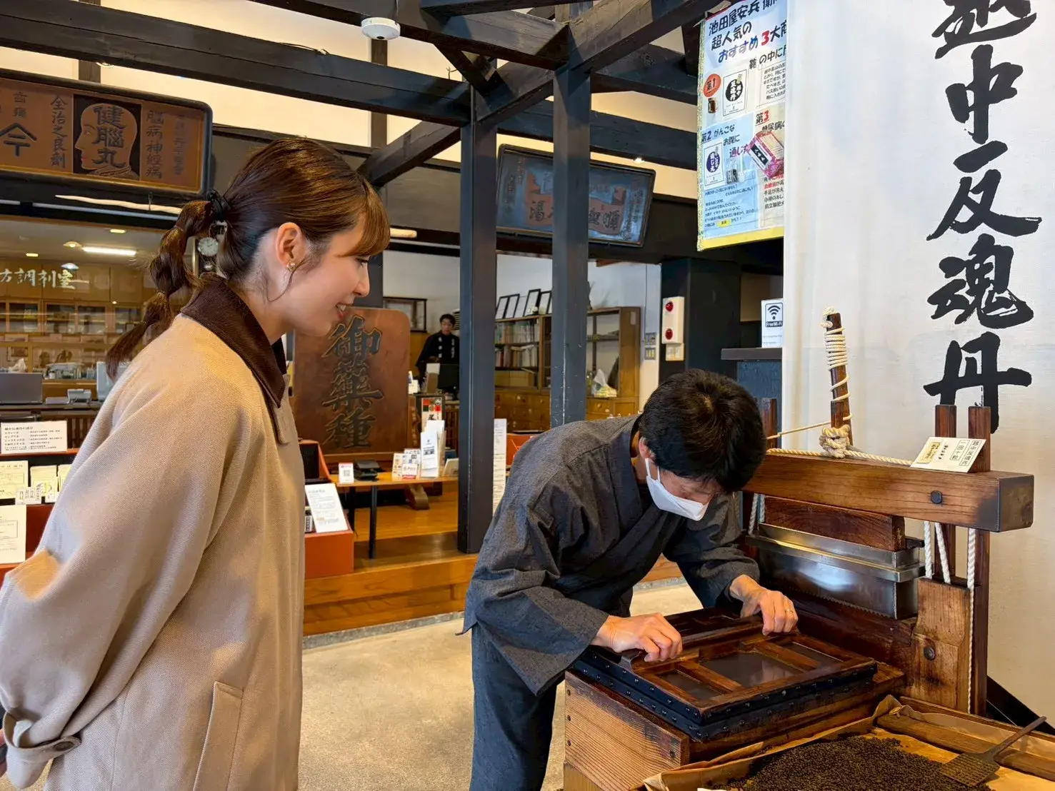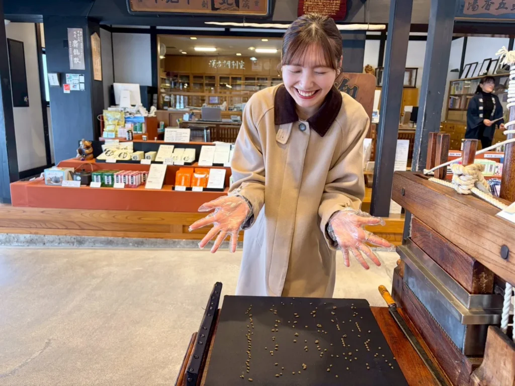池田屋安兵衛商店では、「丸薬製造体験」ができるんです!予約の必要はなく、体験は無料!空いていればその場ですぐに体験することができますよ!