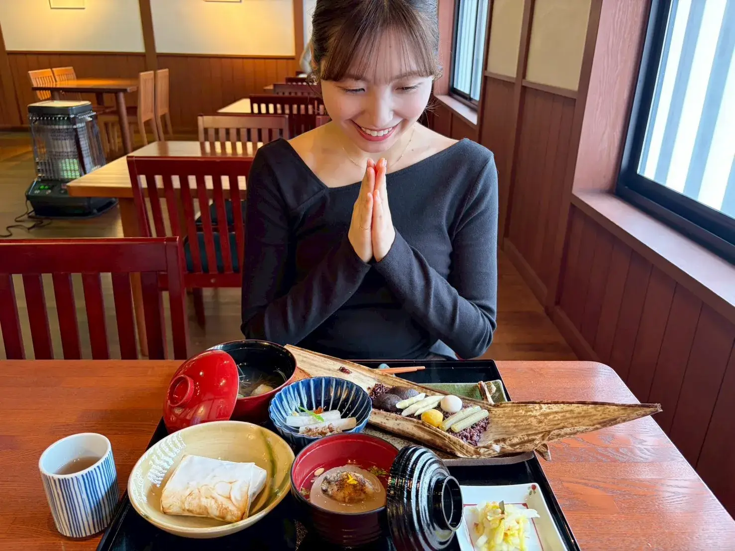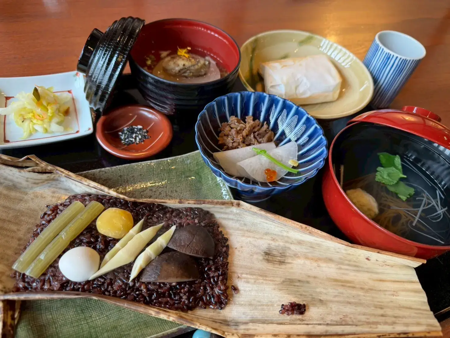 おこわが蒸し上がり、いよいよ健康膳が到着!早速いただきまーーす!