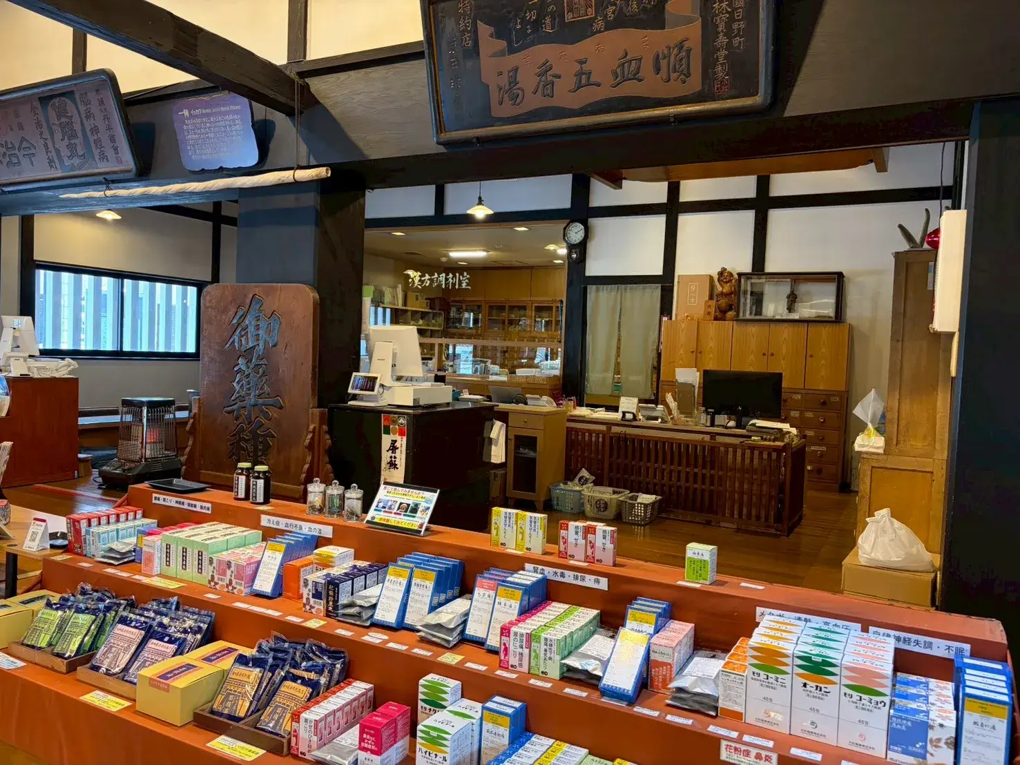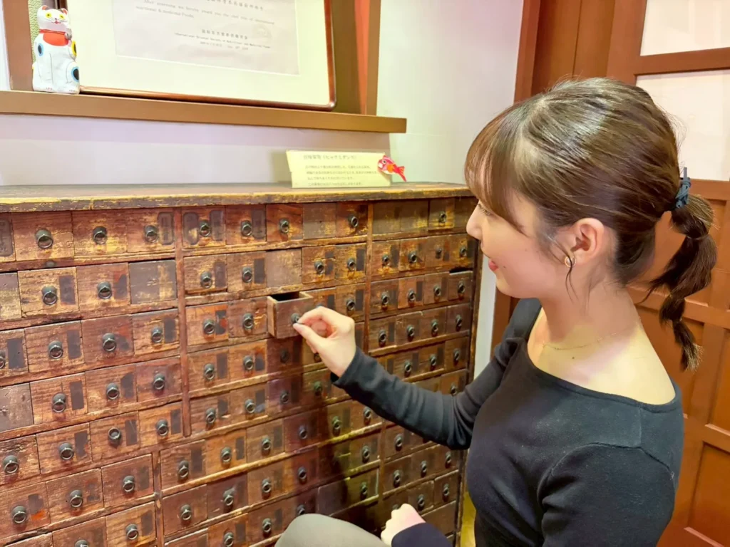 店内には、江戸時代より漢方医が使用した、生薬を入れる箪笥「百味箪笥」もありました!年季が入っていて、歴史を感じます!