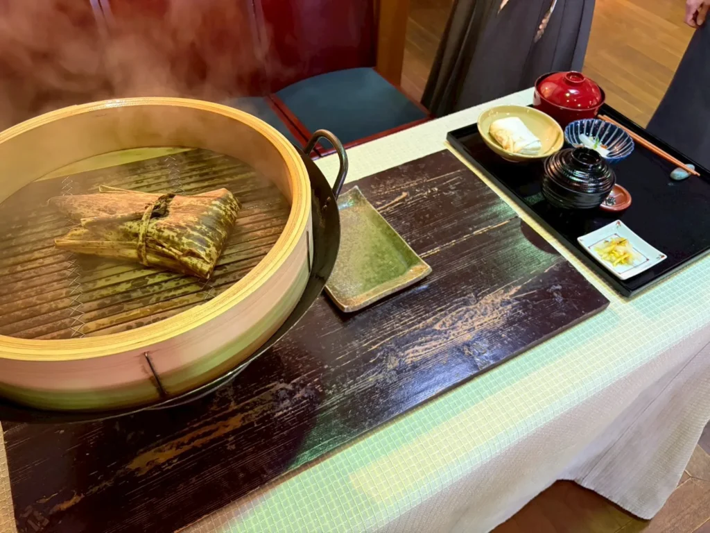 私は健康膳(基本コース)を注文!なんと…健康膳の一品、黒米の山菜おこわは厨房ではなく店内の蒸し器で蒸しているんです!目の前で蒸してもらえるなんて…食べるのがますます楽しみになっちゃいます!