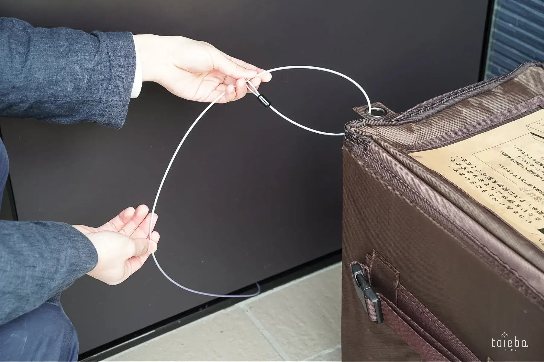 宅配ボックスと家の柱やドアノブをワイヤーで固定することで、宅配ボックスごと盗られる心配もなし!