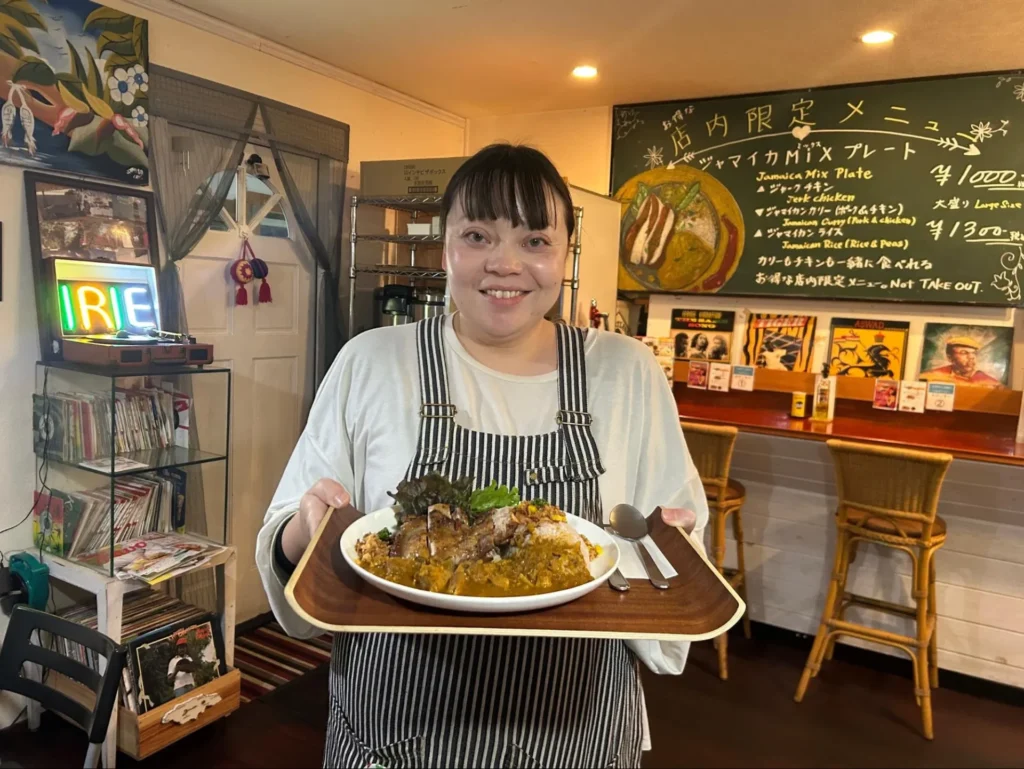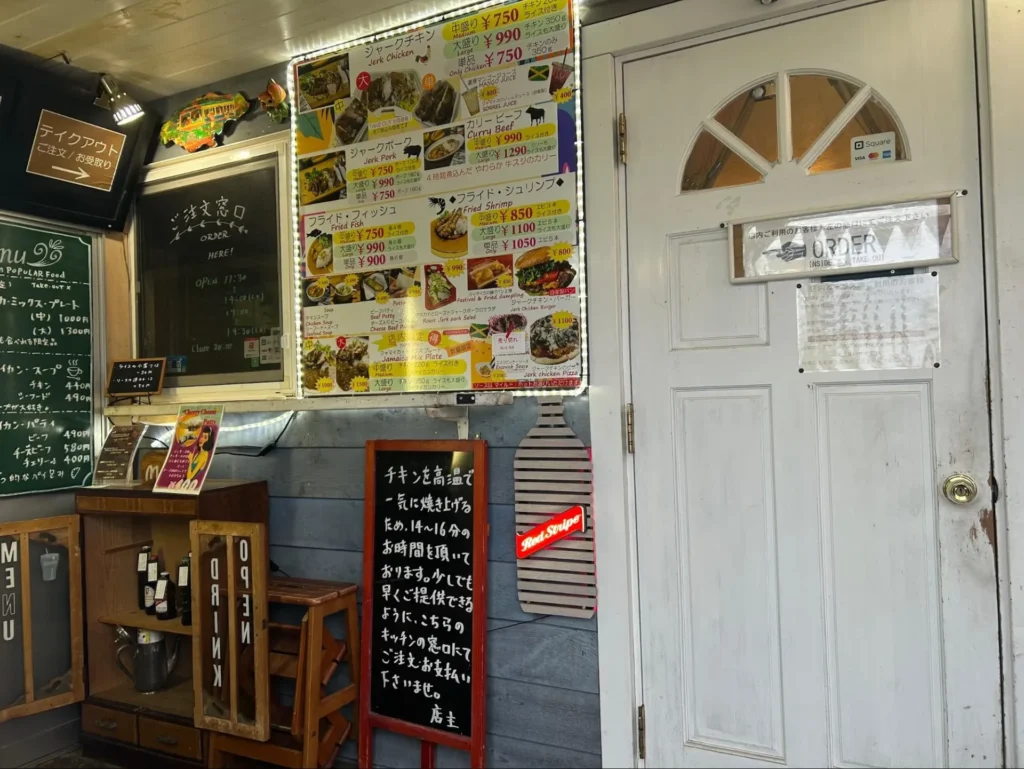 店の入口に飾ってある「IRIE」という言葉はジャマイカのパトワ語で「最高」「嬉しい」などといったポジティブな意味を持つ言葉で、幸福や満足感を表す掛け声としても親しまれています。