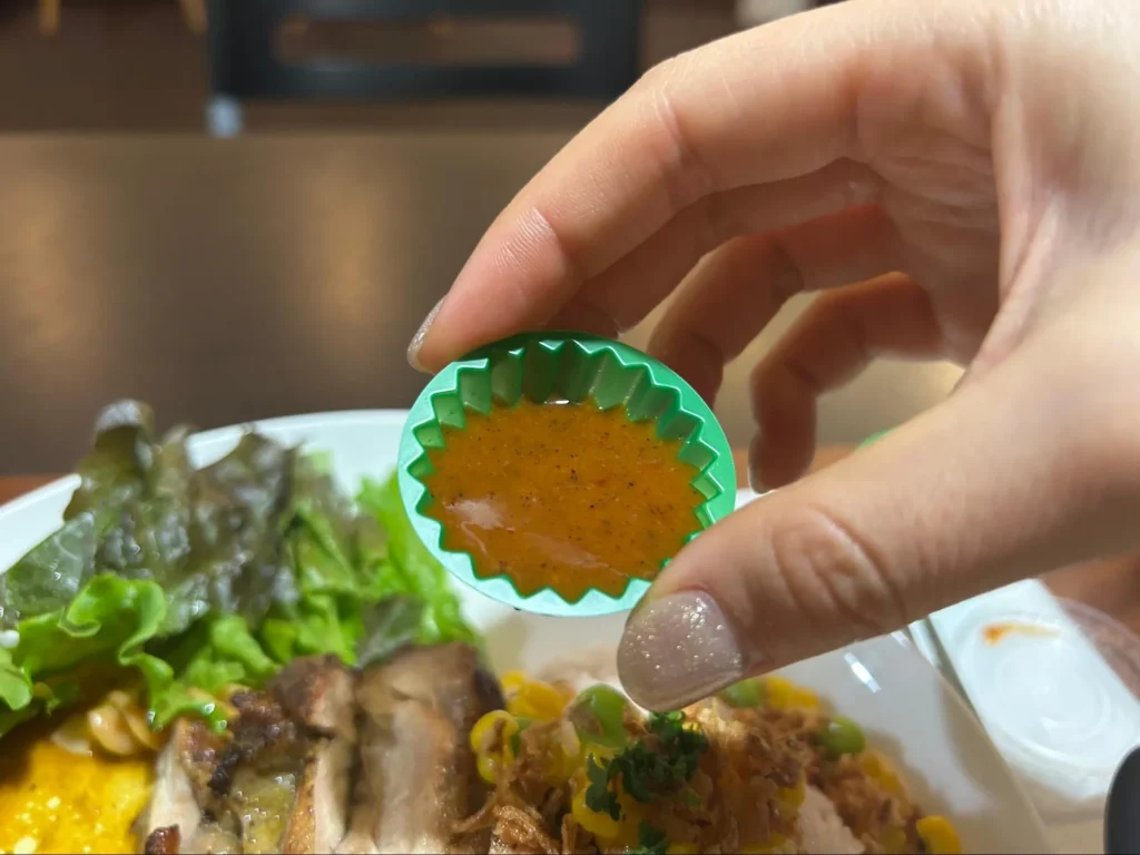 プレートにはタバスコに似た味の辛めのソースがついてきて、味変をすることができます。辛いのが好きな人は店員さんに伝えるともっと辛いソースにしてもらえますよ!