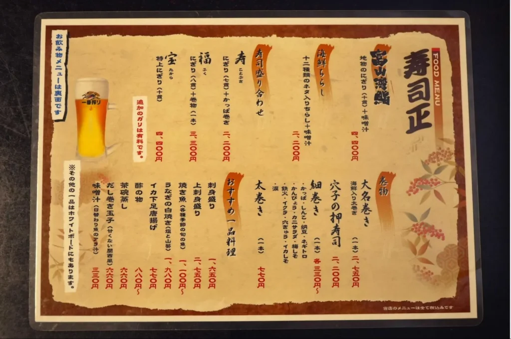 丁寧な手仕事を味わう寿司正のメニュー
