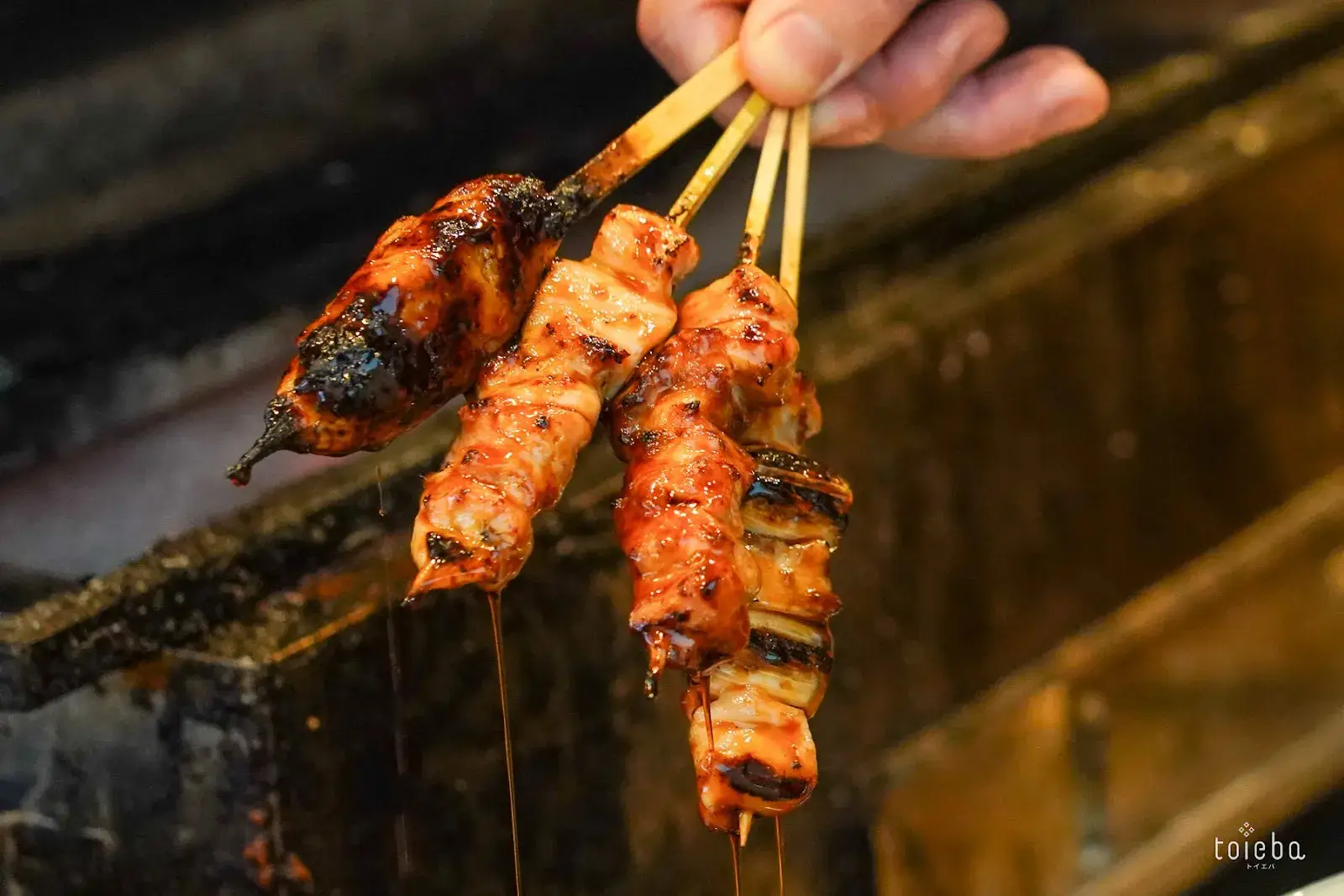 お店でぜひ味わっていただきたいのが、炭火で一本ずつ丁寧に焼き上げられる香ばしい焼き鳥。秘伝のタレは、醤油や砂糖など7種類の素材をじっくりと煮込んで作られており、焼き鳥にしっかりと絡むように計算されたタレのとろみが、お肉の旨味を引き立てています。一口食べると、ついついお酒が進んでしまうでしょう。