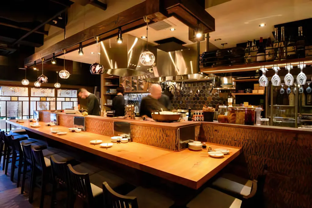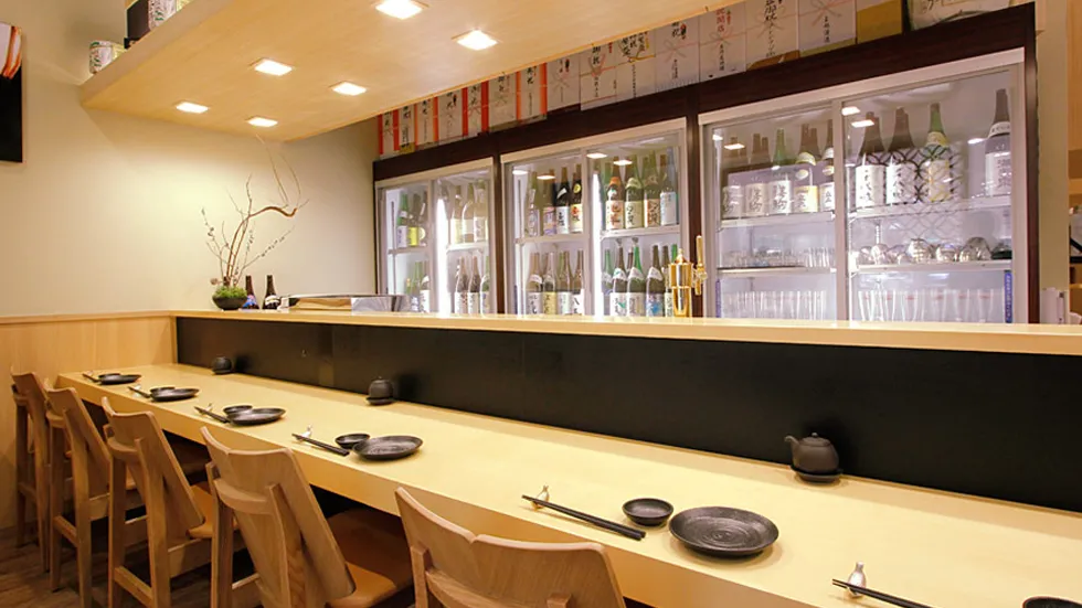 大人の隠れ家で一人飲みを堪能したい夜には「居酒屋 艶次郎」が最適です。落ち着いた照明が照らす店内には、全国の日本酒愛好家が憧れる「勝駒」や「千代鶴」といった、希少な地酒のメニューがずらりと並びます。お店にはカウンター席も用意されています。