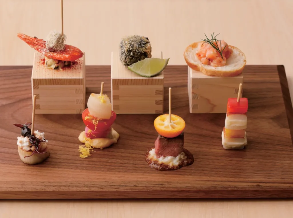 彩り豊かな「美富味プレート」は、富山名物の鱒やホタルイカを使った一口サイズのおつまみが7種類も並び、思わずカメラを向けたくなるおしゃれな盛り付けが特徴です。併設されたショップでは、気に入ったお酒をそのまま購入して帰れます。