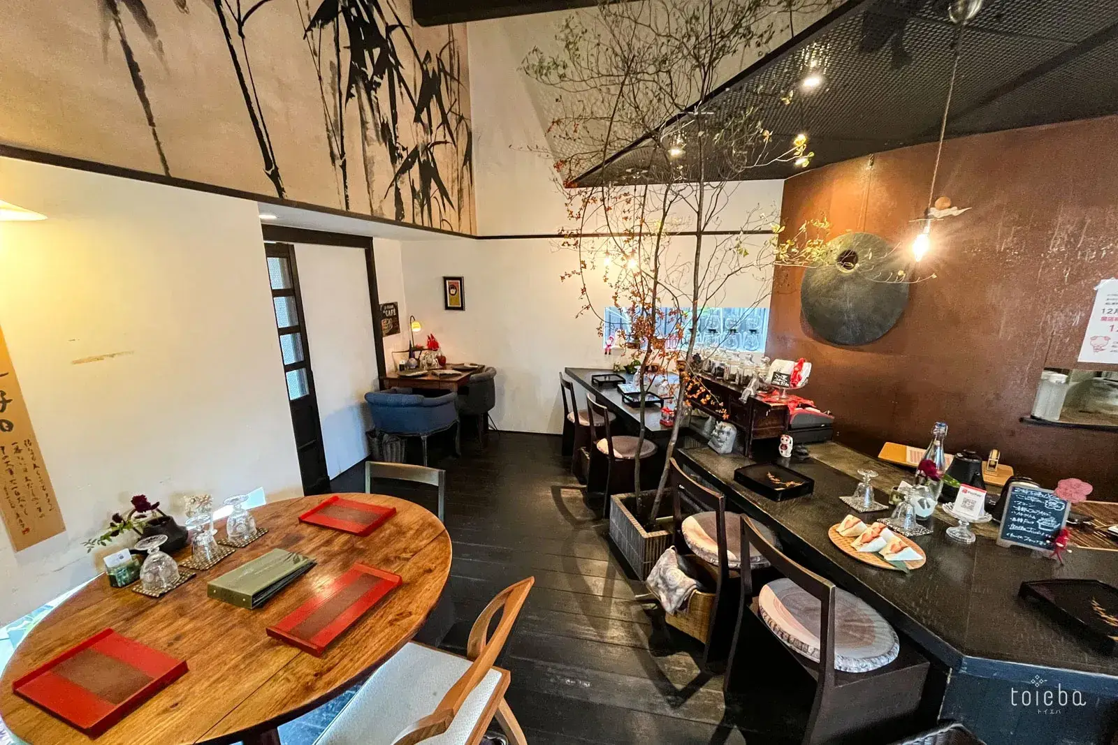 富山市布瀬町に位置する「ことの葉」は、心安らぐ和のカフェです。店内へ一歩足を踏み入れると、カウンターに飾られた立派な木々や、洗練された和のインテリアが心地よい空間を作り出しています。