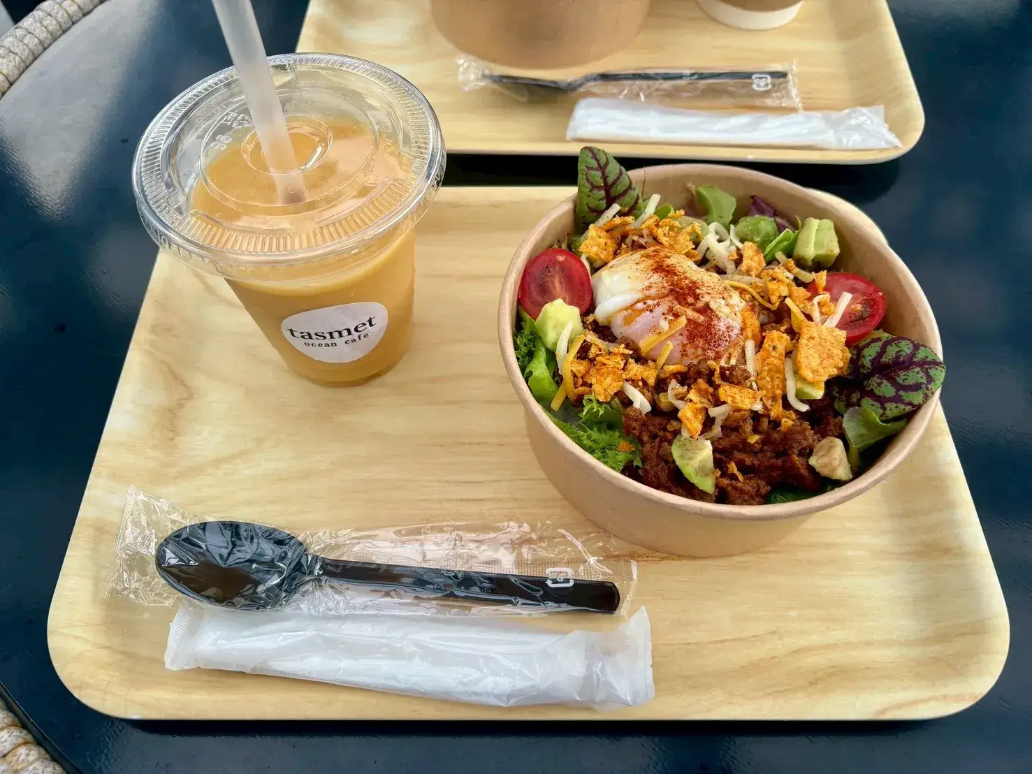 メニューには、タコライスやキーマカレー、ボリューム満点のホットドッグなど、気軽に食べられるフードが揃っています。カラフルなクリームソーダや日替わりスムージーは、海を背景にかざすだけで最高のインスタ映え写真を撮れるでしょう。