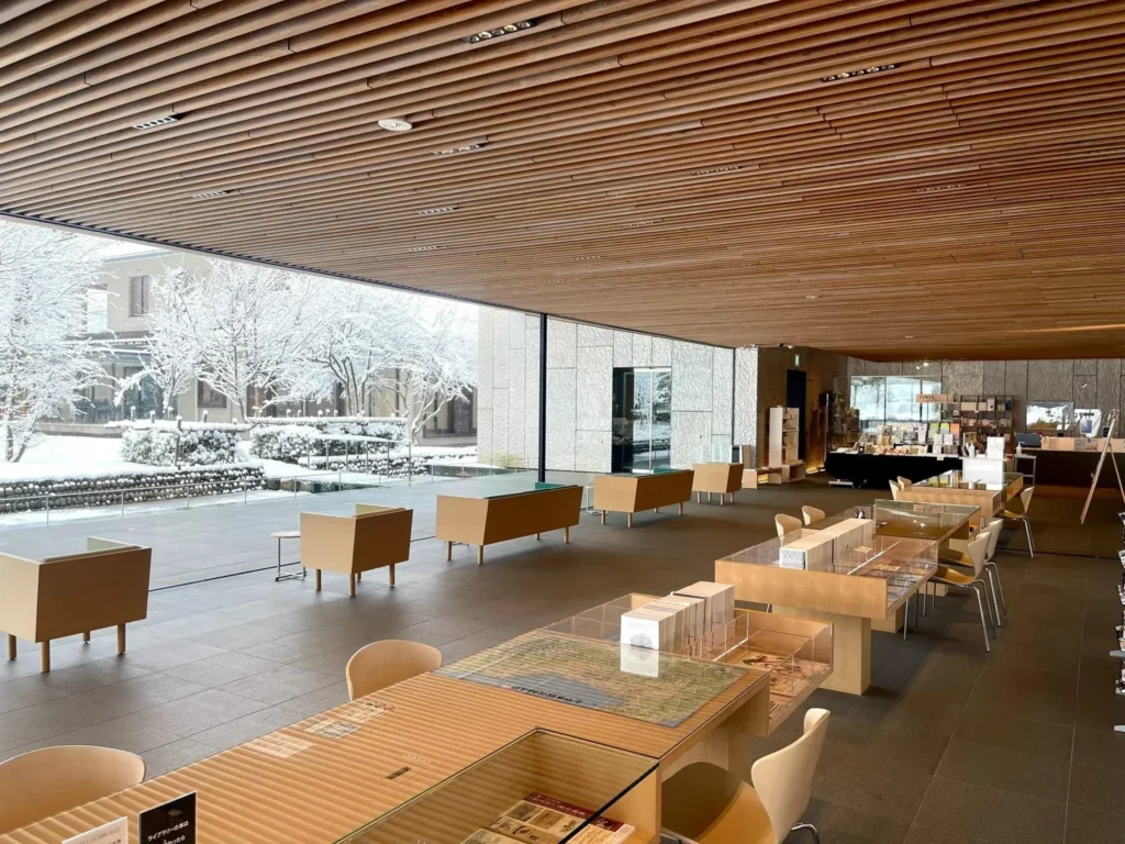 館内へ進むと木材のぬくもりを活かした温かな空間が広がり、訪れる人々を優しく包み込んでくれるでしょう。カフェやショップも併設されているため、鑑賞の余韻に浸りながら、ゆったりとした交流の時間を楽しんでみてはいかがでしょうか。