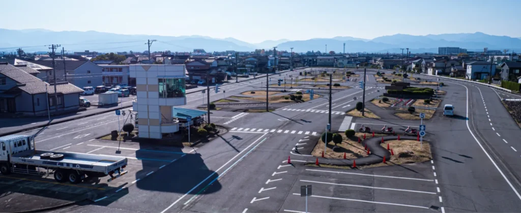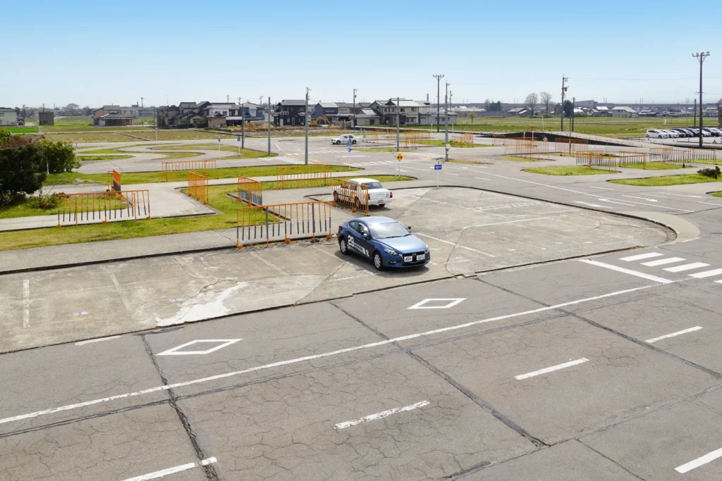「富山県自動車学園」は、県内6か所で教習を行う大きな組織のネットワークが強みです。富山校では初心者の方がリラックスして練習できるよう、開放感のあるコース設計がなされています。
