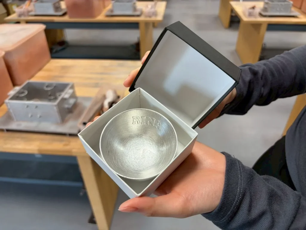 高岡地域地場産業センターの鋳物体験では、高岡銅器の鋳物産業でよく使用される技法を使って「ぐい呑み」や「ミニ水盤」をつくることができます!