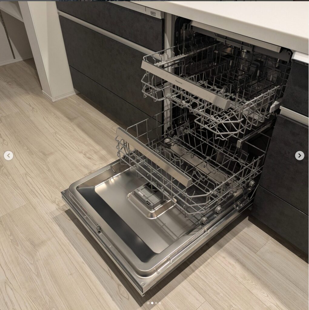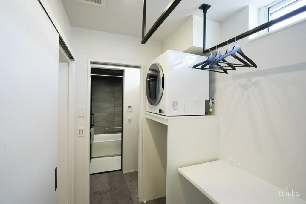 ランドリールームには、洗濯物をその場でサッと畳んだり、アイロンがけができる「広々とした作業台」を設置。パワフルなガス衣類乾燥機や、家事時間を減らす大容量の食洗機など、最新設備も完備しています。