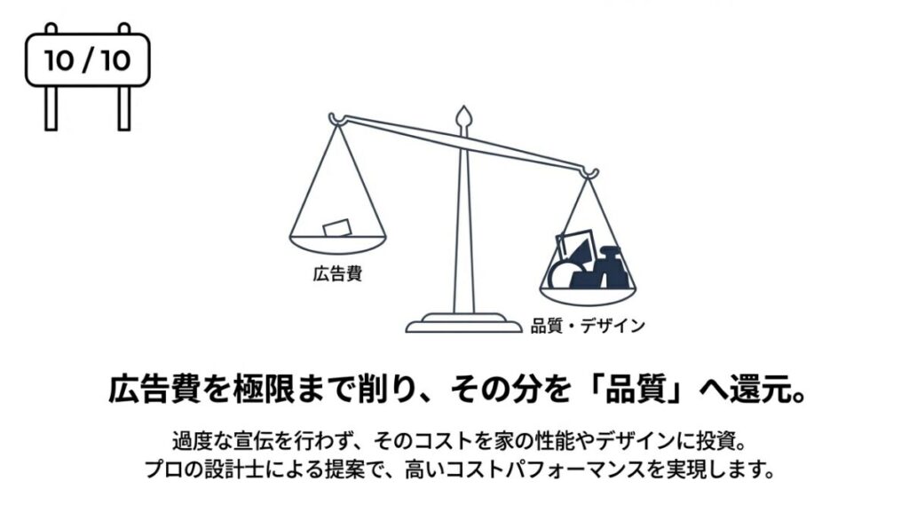 過度な広告費を抑え、その分を家の性能やデザインに還元。