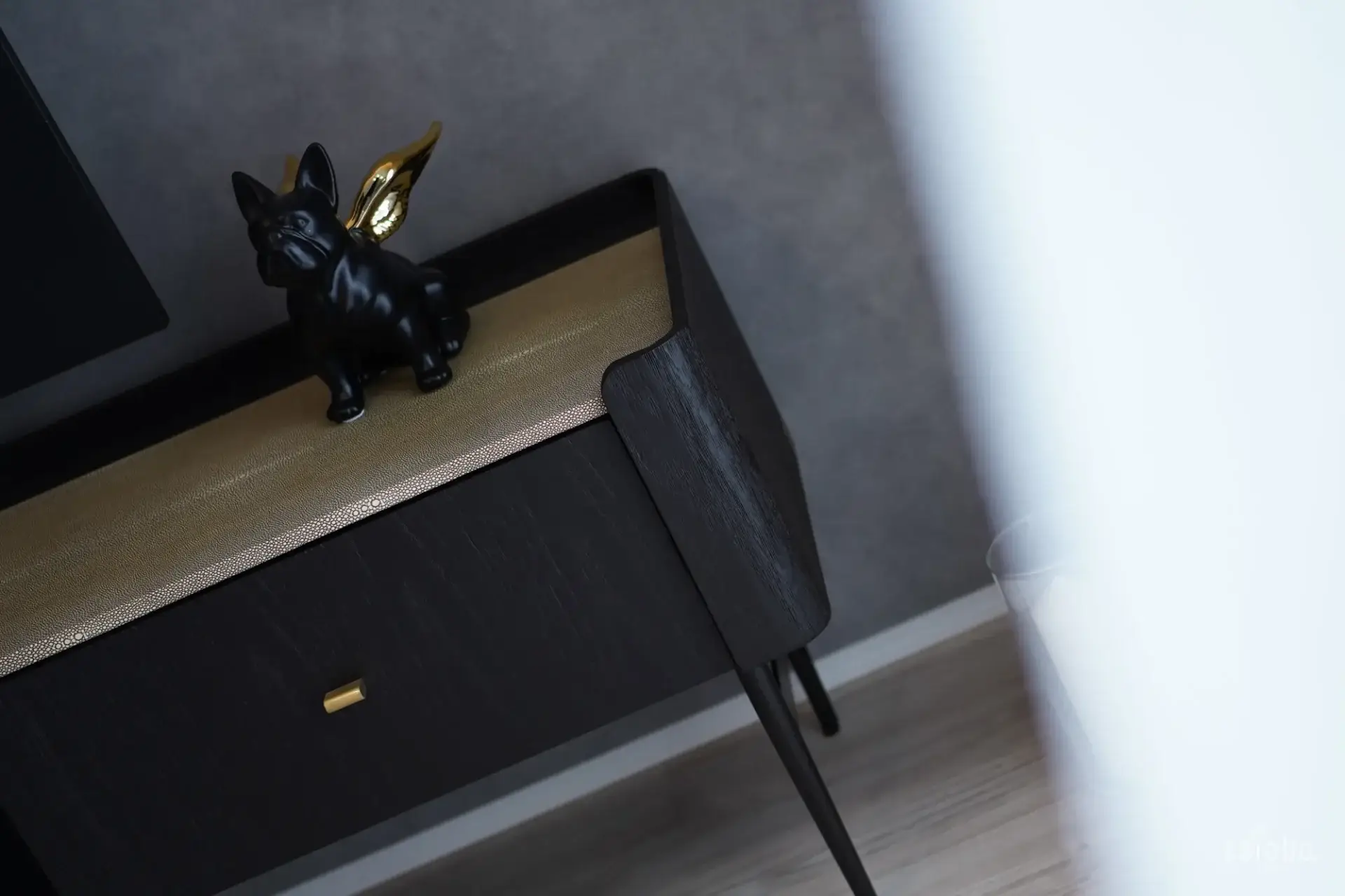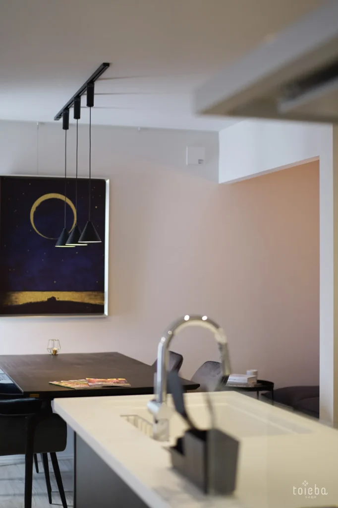 「都会的な洗練さとリゾートのようなくつろぎをテーマにしています。無駄を省き、スッキリと大人っぽく仕上げることで、置いてある家具の美しさが引き立つように設計しました。」