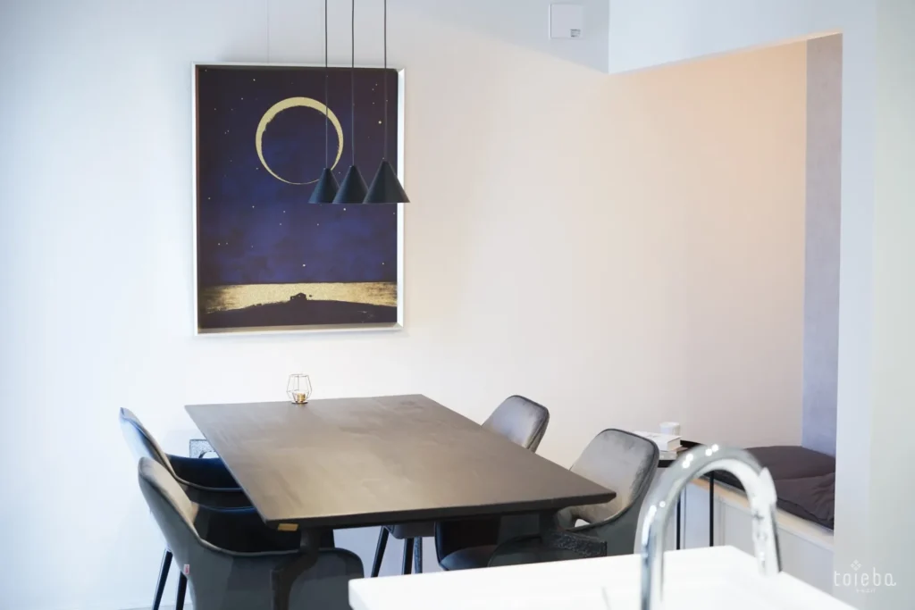 一歩中へ入ると、洗練されたモノトーンの外観だけでは想像もつかないほど、奥行きのあるシックで美しい空間が広がっていました。