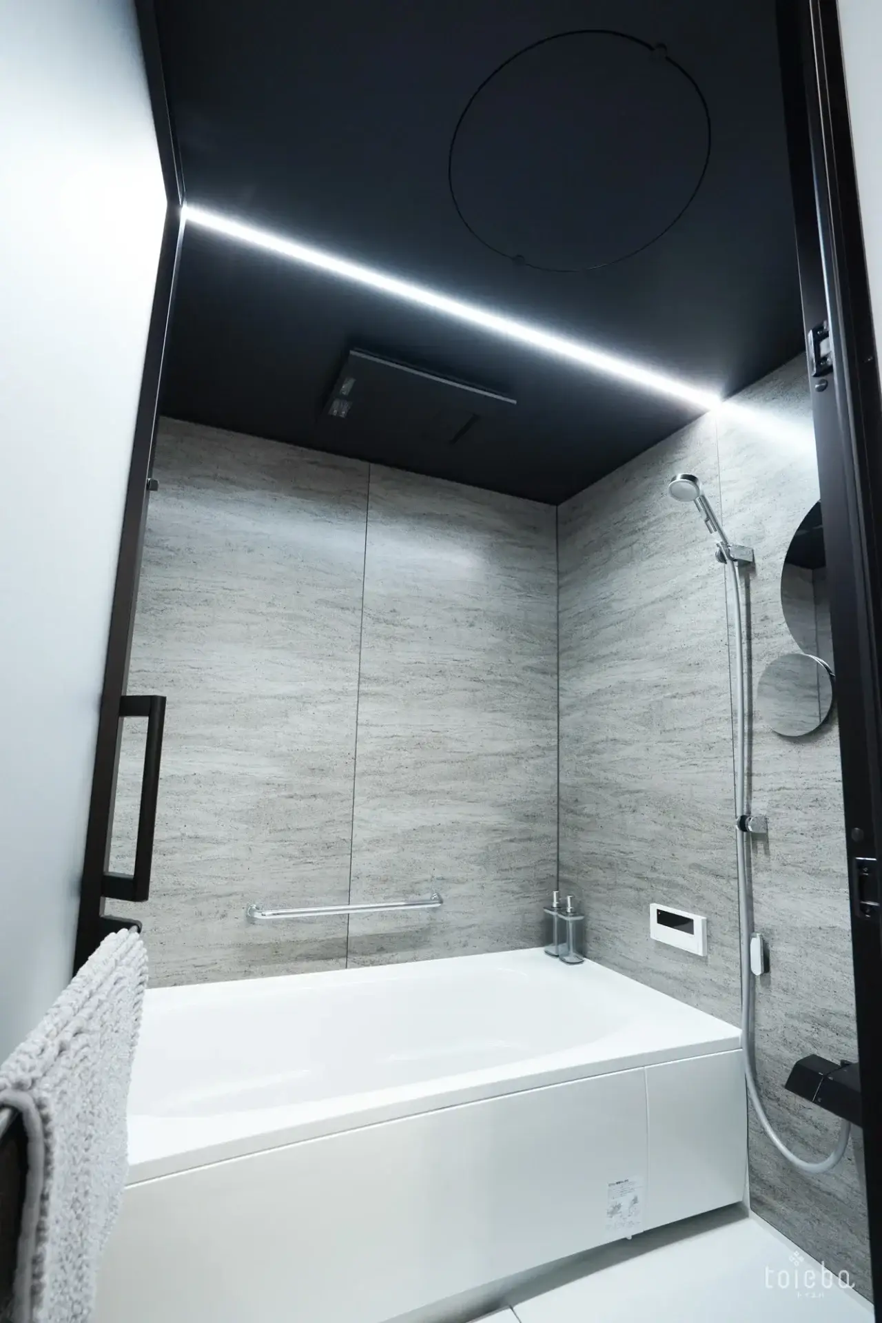 Q:バスやトイレ、洗面など、水廻りもホテルライクで素敵です。設計の工夫は