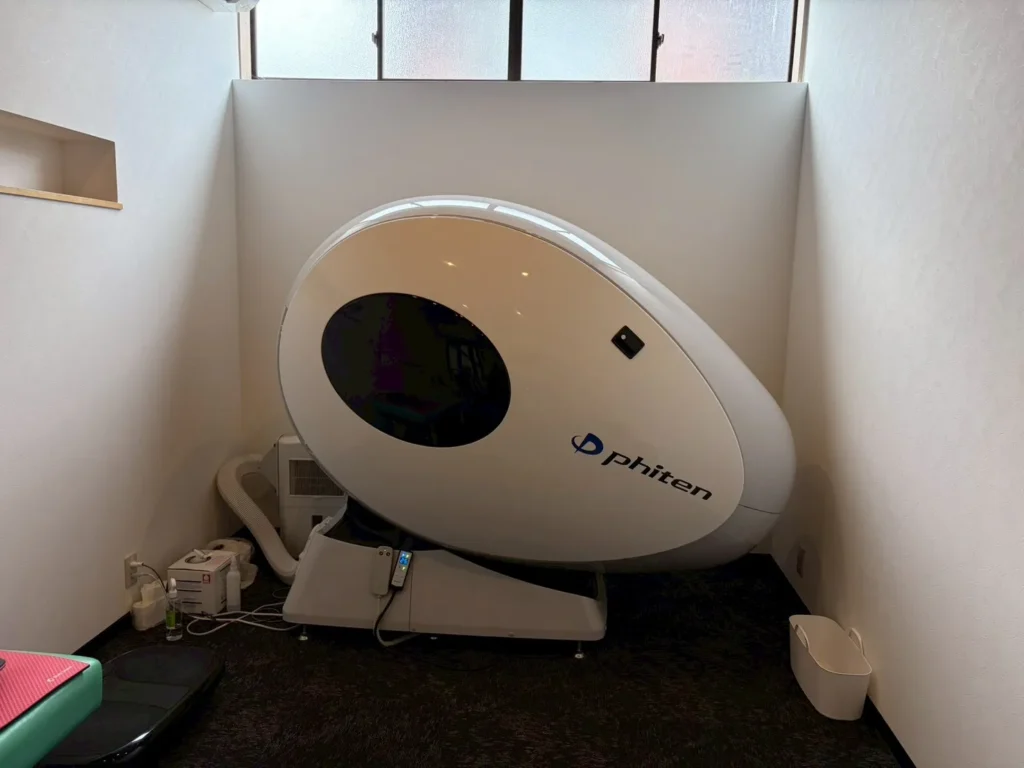 カプセルの中にはゆったり座れるシートがあり、中に入って過ごすだけで、「健光浴」というやわらかな光の効果により、体をリラックス状態へ導いてくれます。怪我の回復として利用したり、練習や試合前後のケアとして、皆さん利用されているそうです◎