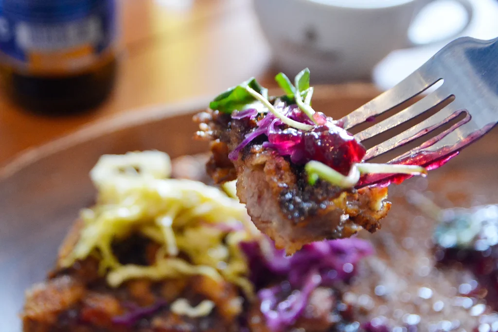 豚肉に衣をつけた揚げ物で、とんかつの元祖とされています。ザックザクのカツは香ばしく、スパイスが効いた豚肉から旨味がジュワッと溢れます。付け合せのコールスローサラダと一緒に食べるのはもちろんですが、「ぜひジャムと食べてほしい」とのこと!