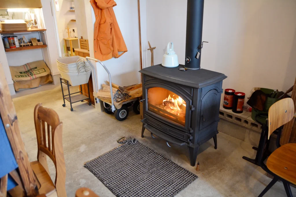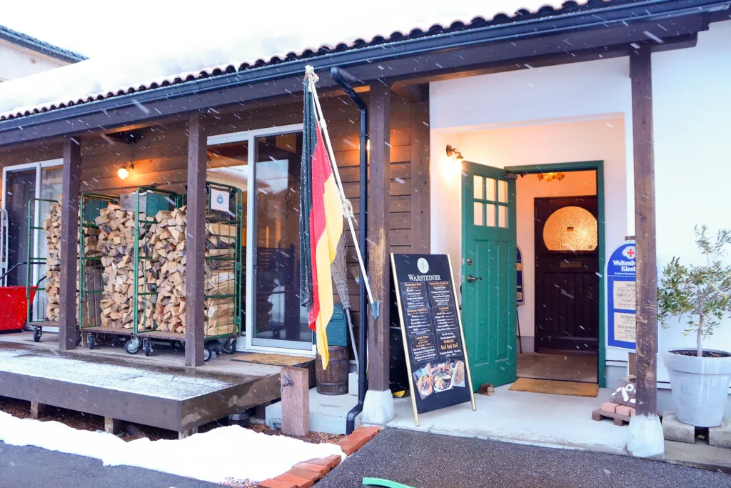 外観も店内のインテリアも素朴で落ち着いたデザインで、どこかヨーロッパを感じさせます。寒い季節には薪ストーブに火が灯り、パチパチと音を立てる中で食事を楽しむことも。ランチからビールバーの時間までゆっくり過ごすことができ、幅広い世代に支持されています。