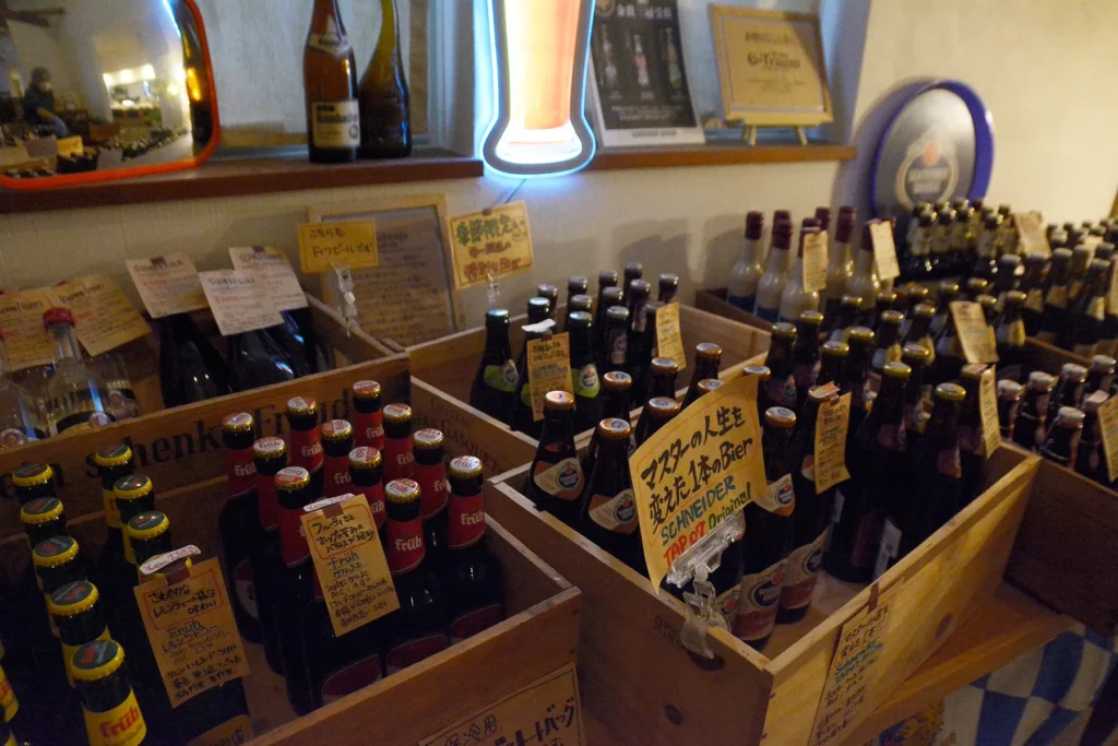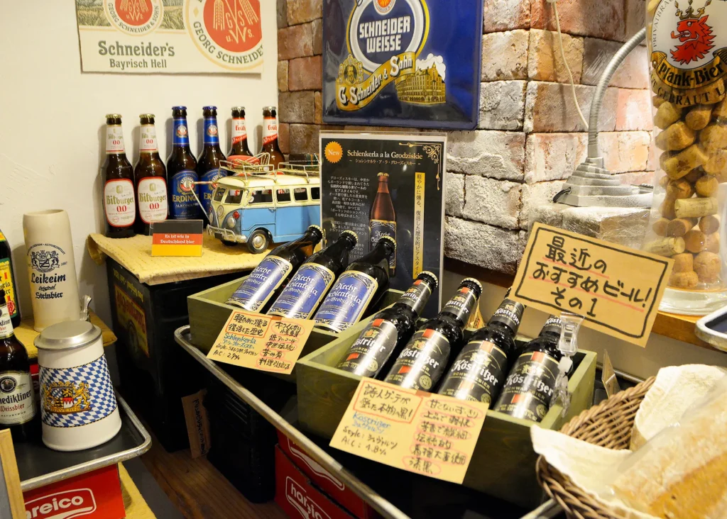 そして、店内の至る所に並べられているドイツビール。ビールやブルスト(ドイツのソーセージ)など、本場の味は現地からお取り寄せ。一つひとつ丁寧に仕立てた“ドイツビールに合う料理”を楽しめます。