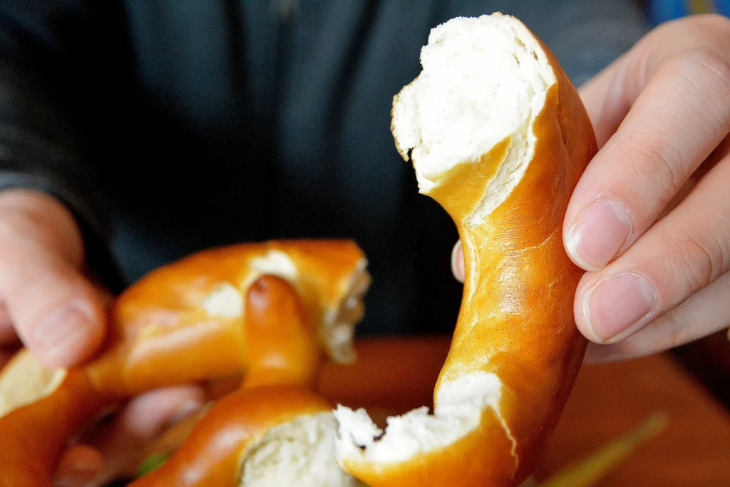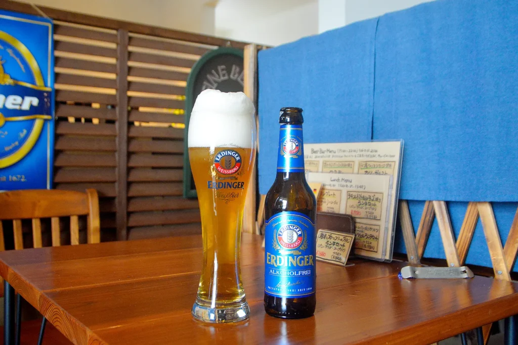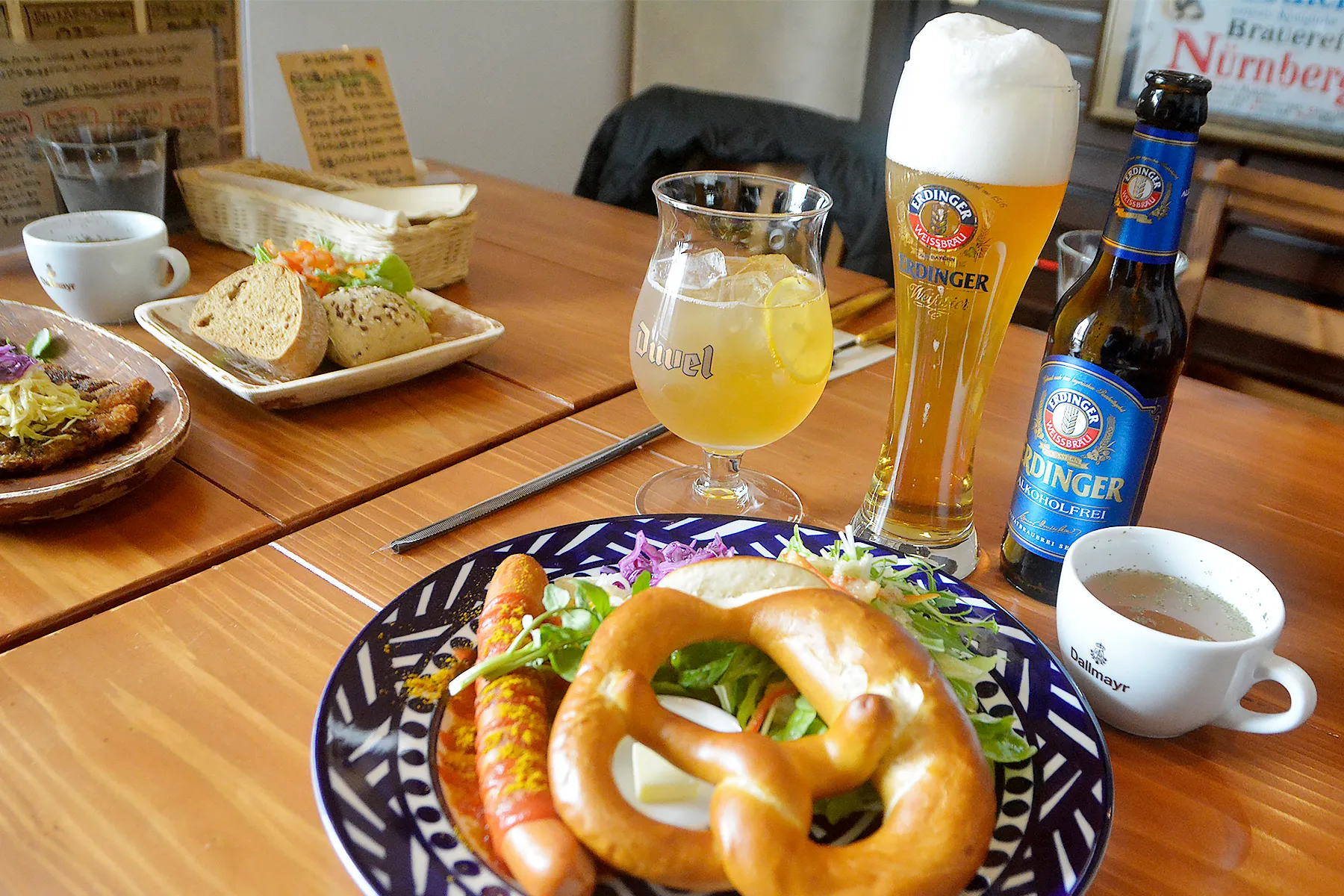おすすめの組み合わせとして、プレッツェルとヴァイツェン(アルコールフリー)をいただきました。コクのあるビールの風味と、香ばしくて味わい深いパンは、間違いなく最高の組み合わせでした。今までコーヒーや紅茶といただいてきましたが、こんなに相性の良いカップルがいるのかと驚きです。