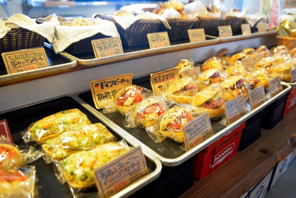 午前11時の開店時には、ランチタイムに向けて様々な商品が並び、ランチと一緒に味わうもよし、テイクアウトで自宅で楽しむもよし。コロナ禍後にイートインを再開したことで、食事に合うドイツパンを中心に取り揃えています。
