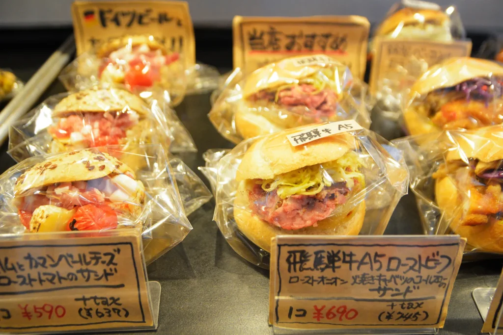 自家製のローストビーフを使った「飛騨牛A5ローストビーフサンド(テイクアウト)」(税込745円)や、「ドイツ産ソーセージと焼きキャベツのコールスローのサンド(テイクアウト)」(税込529円)など、ドイツパンと一緒に食べるおいしい料理、ぜひ味わってみてくださいね。