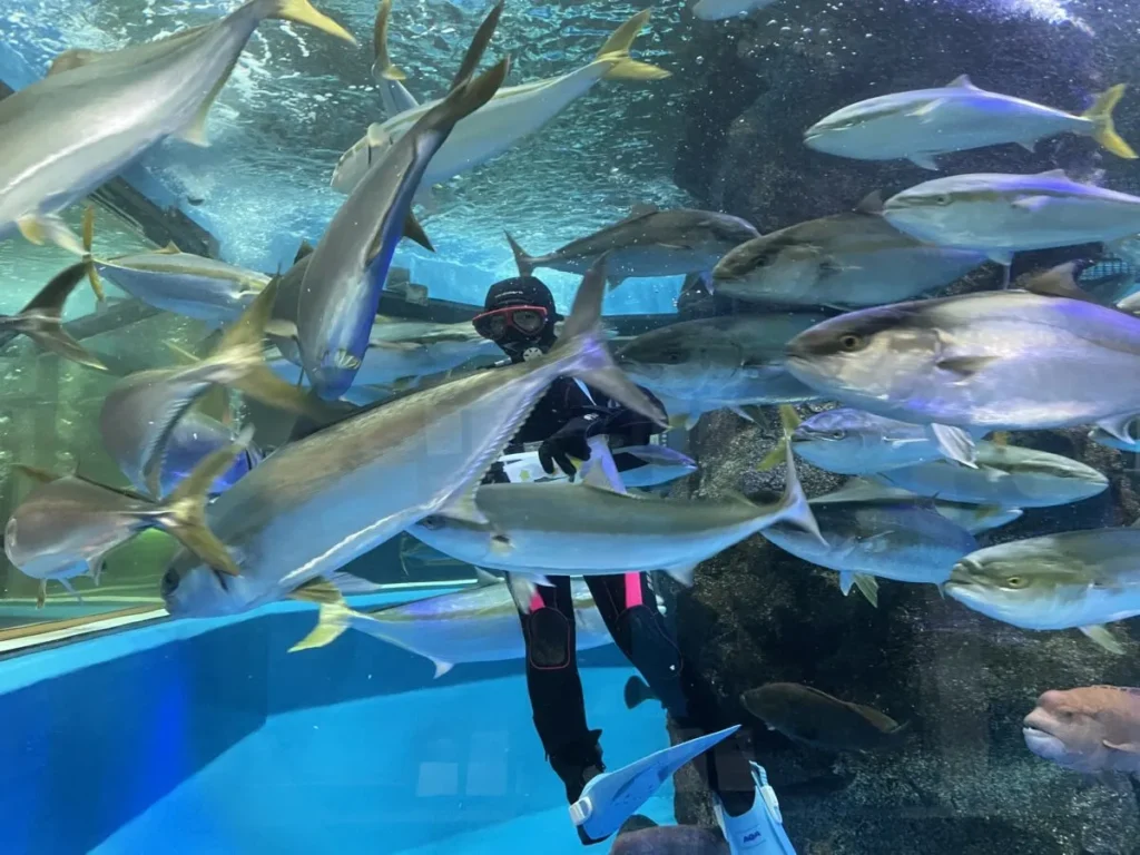 ダイバーが水中で魚たちに餌を与える「富山湾大水槽お食事タイム」や、「アザラシ・ペンギンのお食事タイム」など、毎日行われるイベントも見どころです。「波の水槽」では、カプセルトイでエサを購入して魚たちに餌やり体験ができます。クロダイやメジナ、マアジなど沿岸の魚が集まってくる様子は、子どもも大人も思わず夢中になってしまうでしょう。