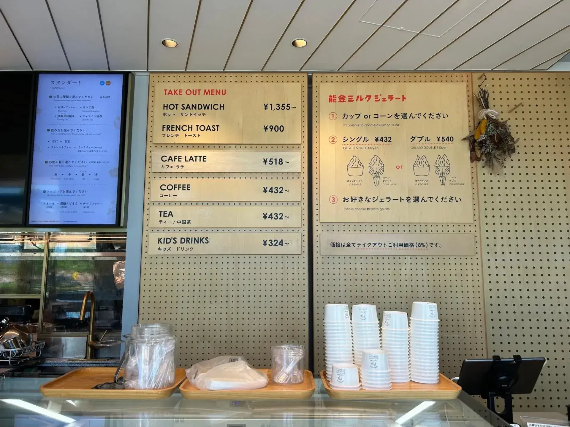 ショーケースには能登ミルクを使ったジェラートが並び、店内で味わうのはもちろん、テイクアウトして外で楽しむこともできます。季節限定メニューが登場する時期もあるため、何度か訪れても違った楽しみ方ができるでしょう。