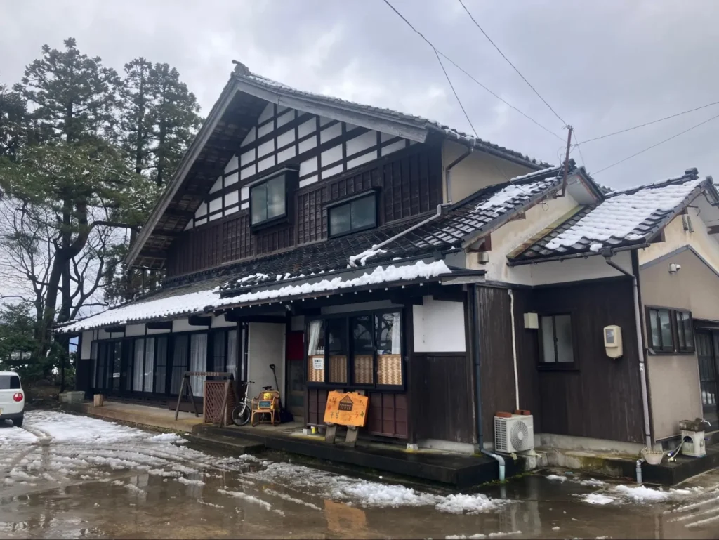 この建物は、北陸地方に見られる伝統的な住宅様式「東造り(あずまづくり)」。店内には立派な梁が通っており、思わず見上げてしまうほどの存在感があります。取材中にその梁の美しさについてお話しすると、店主もこの古民家に惹かれた理由のひとつだと教えてくださいました。