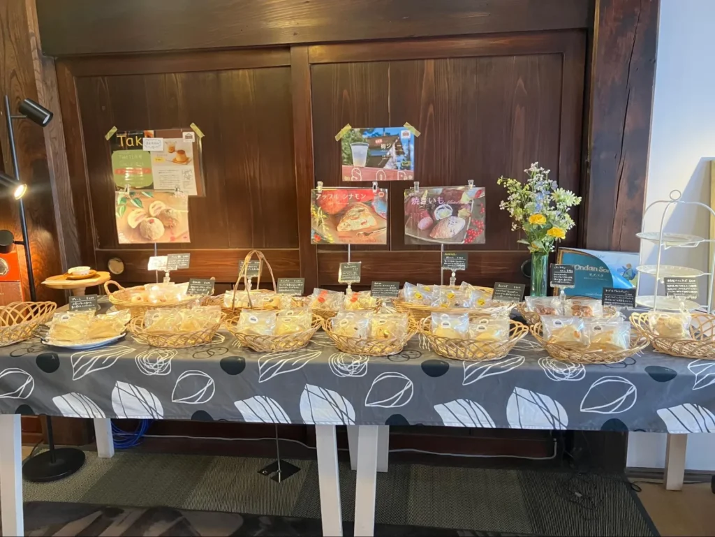 砺波の自然に囲まれた古民家の中にあるそらもよう。落ち着いた空間の中で、ゆっくりと商品を選ぶ時間も心地よく感じられました。営業は金・土・日のみで、売り切れ次第終了となるため、早めの来店がおすすめです。