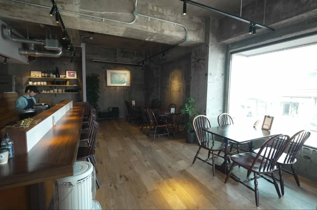 打ちっ放しのコンクリートの壁に、カウンターや床のナチュラルな木材と、店内は最小限の施工で落ち着いた雰囲気に仕上げられています。